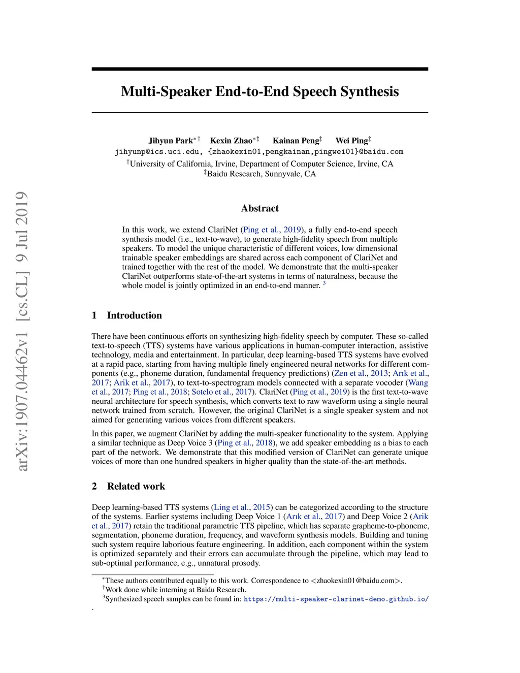 Multi-Speaker End-to-End Speech Synthesis
