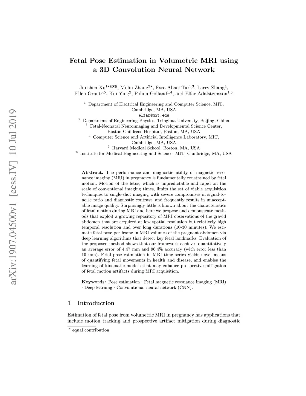 Fetal Pose Estimation in Volumetric MRI using a 3D Convolution Neural