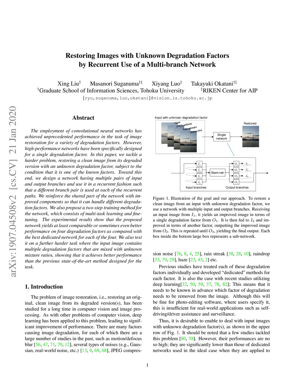 Restoring Images with Unknown Degradation Factors by Recurrent Use of a