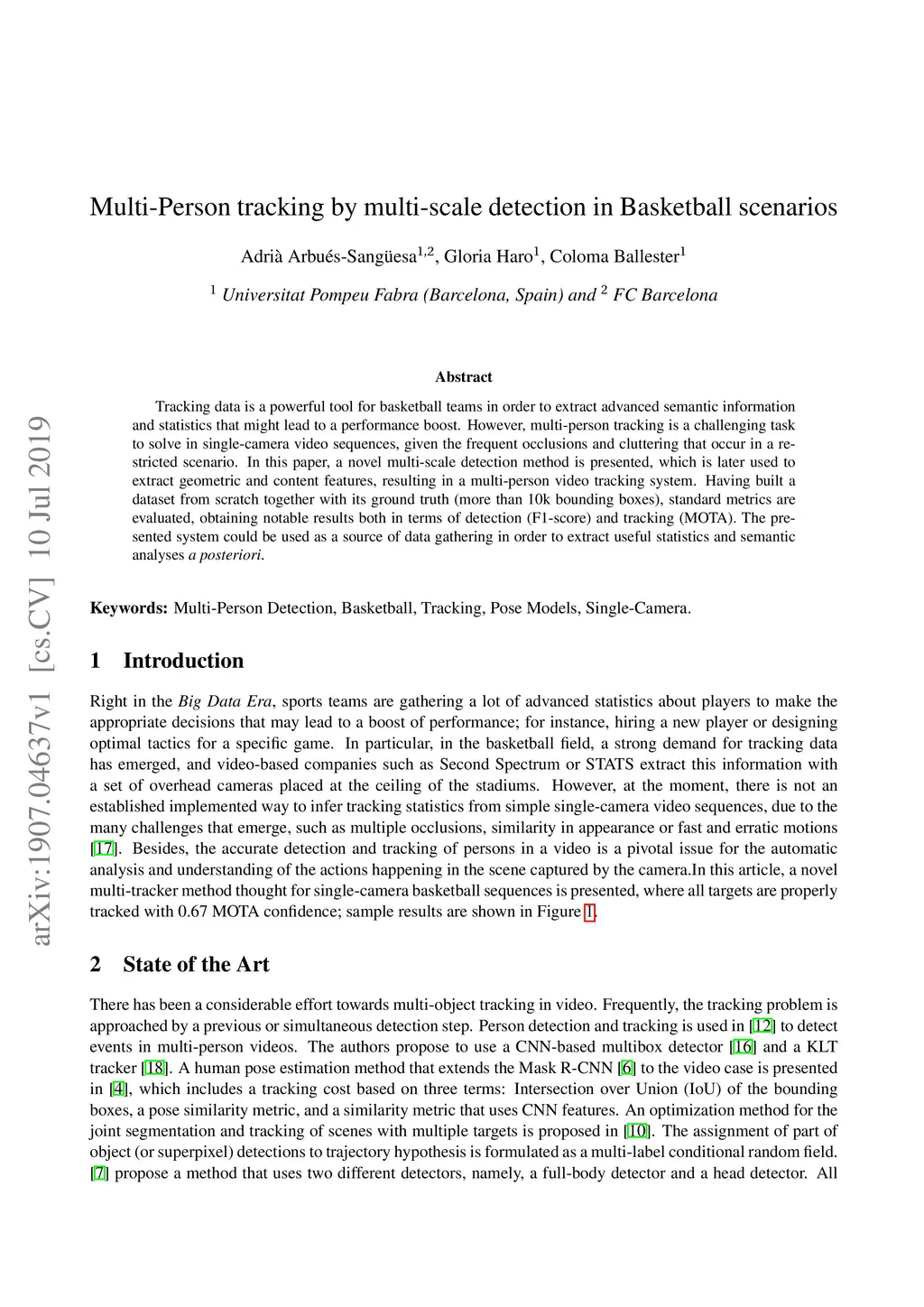 Multi-Person tracking by multi-scale detection in Basketball scenarios