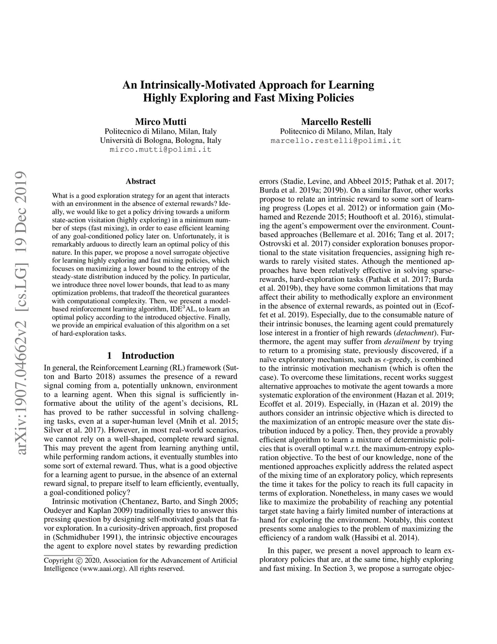 What is a good exploration strategy for an agent that interacts with an environment in the absence of external rewards? Ideally, we would like to get a policy driving towards a uniform state-action visitation (highly exploring) in a minimum number of steps (fast mixing), in order to ease efficient learning of any goal-conditioned policy later on. Unfortunately, it is remarkably arduous to directly learn an optimal policy of this nature. In this paper, we propose a novel surrogate objective for learning highly exploring and fast mixing policies, which focuses on maximizing a lower bound to the entropy of the steady-state distribution induced by the policy. In particular, we introduce three novel lower bounds, that lead to as many optimization problems, that tradeoff the theoretical guarantees with computational complexity. Then, we present a model-based reinforcement learning algorithm, IDEAL, to learn an optimal policy according to the introduced objective. Finally, we provide an empirical evaluation of this algorithm on a set of hard-exploration tasks.