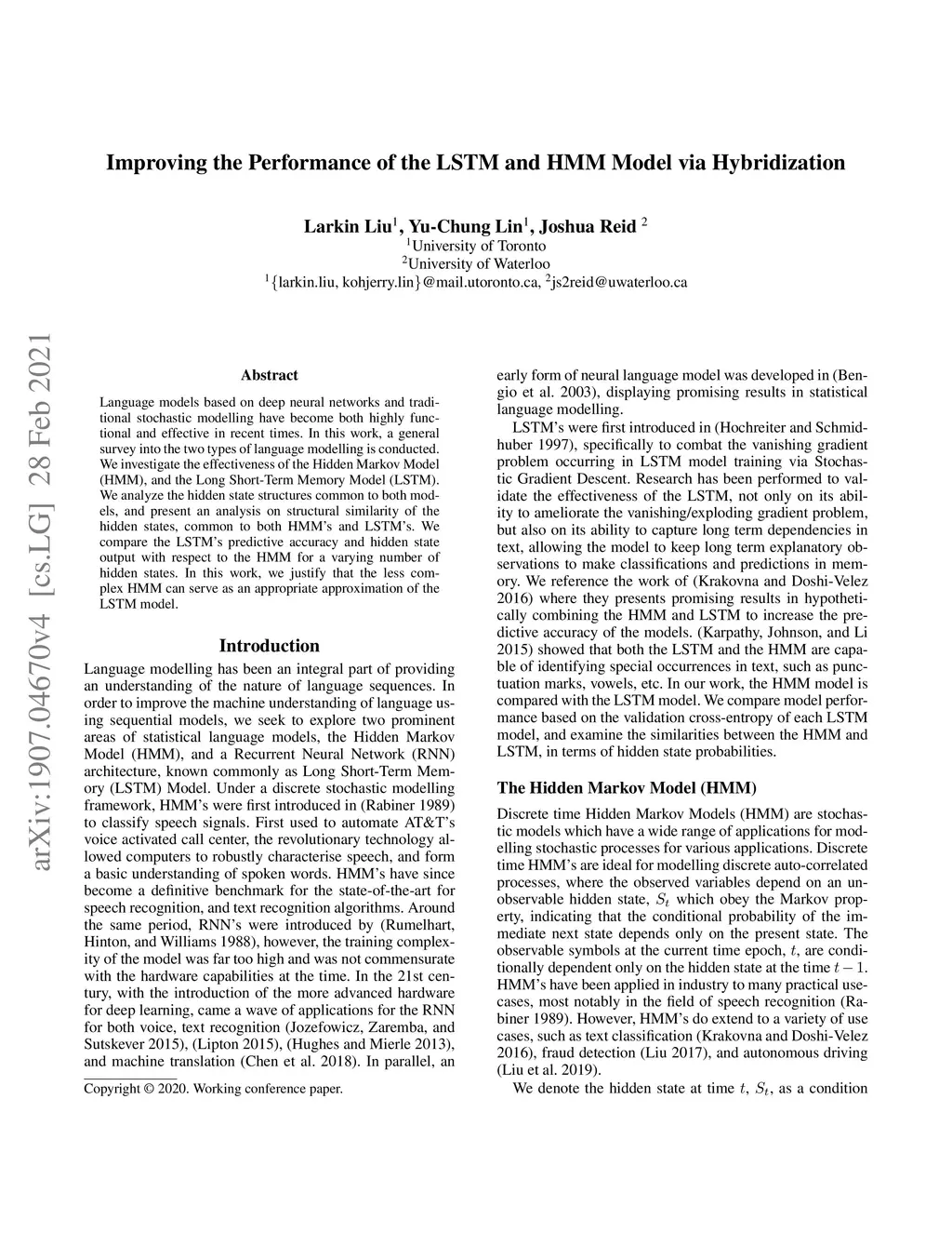 Improving the Performance of the LSTM and HMM Model via Hybridization