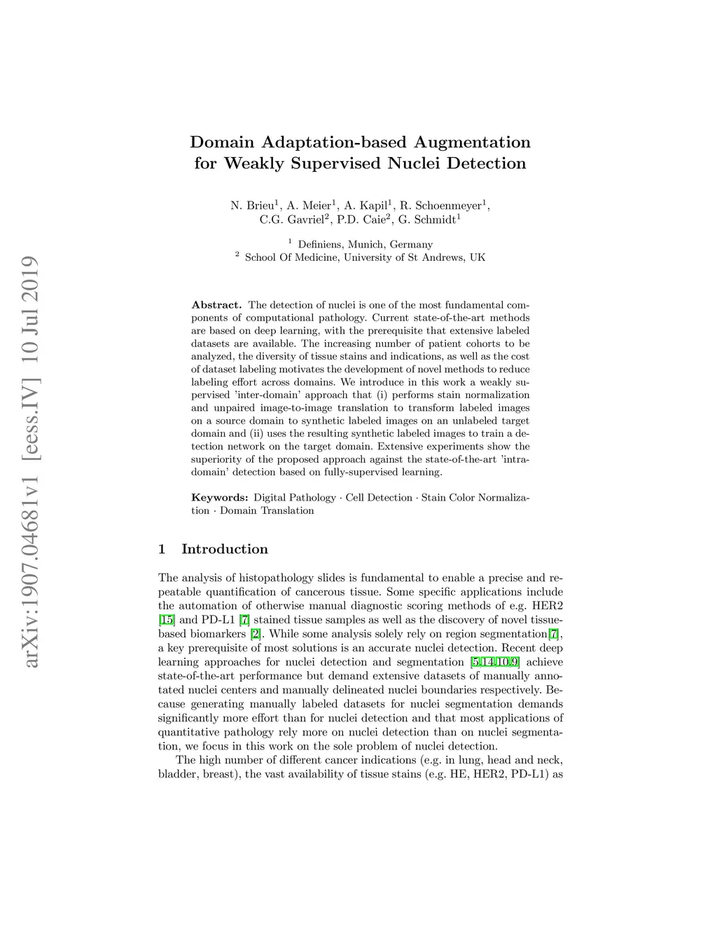 Domain Adaptation-based Augmentation for Weakly Supervised Nuclei