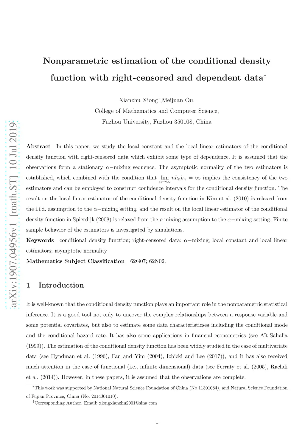 Nonparametric estimation of the conditional density function with