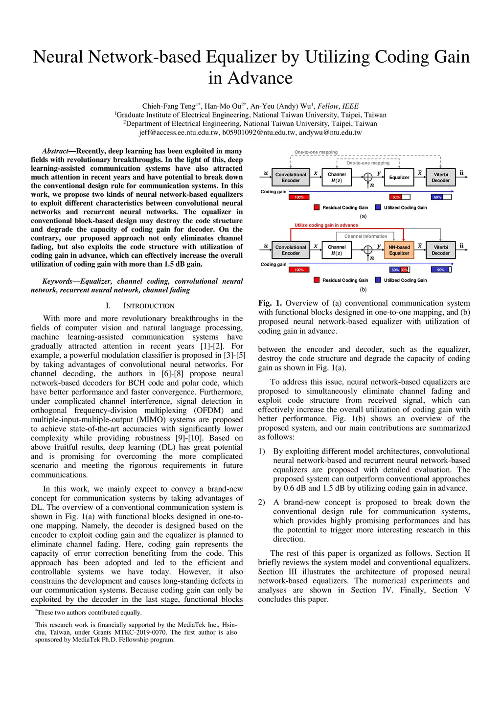 Recently, deep learning has been exploited in many fields with revolutionary breakthroughs. In the light of this, deep learning-assisted communication systems have also attracted much attention in recent years and have potential to break down the conventional design rule for communication systems. In this work, we propose two kinds of neural network-based equalizers to exploit different characteristics between convolutional neural networks and recurrent neural networks. The equalizer in conventional block-based design may destroy the code structure and degrade the capacity of coding gain for decoder. On the contrary, our proposed approach not only eliminates channel fading, but also exploits the code structure with utilization of coding gain in advance, which can effectively increase the overall utilization of coding gain with more than 1.5 dB gain.