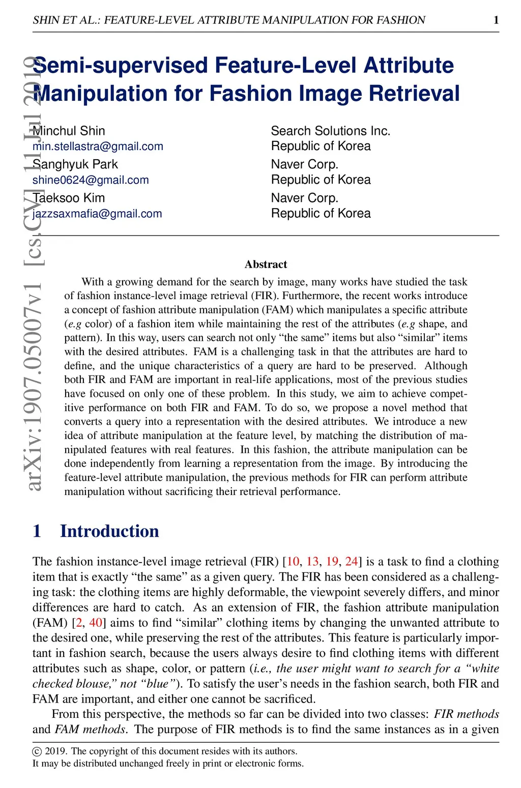 Semi-supervised Feature-Level Attribute Manipulation for Fashion Image