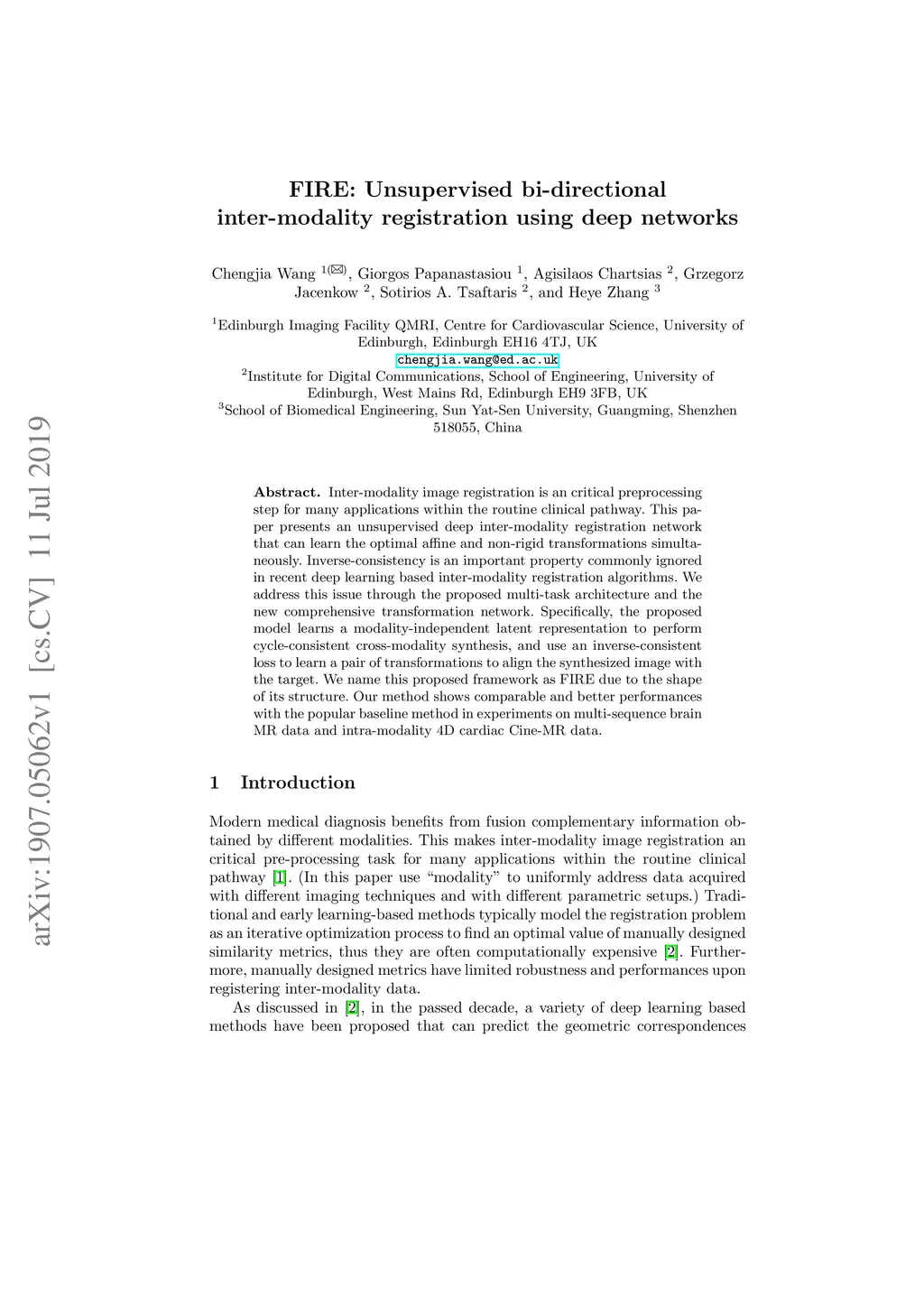 FIRE: Unsupervised bi-directional inter-modality registration using deep