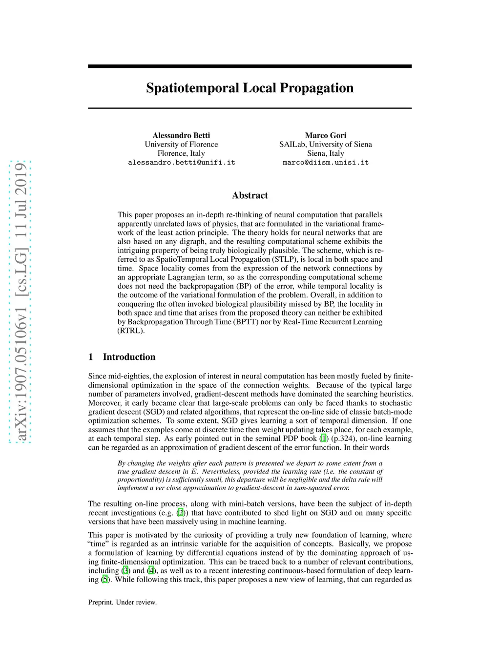 Spatiotemporal Local Propagation
