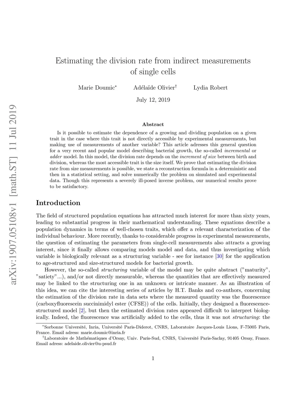 Is it possible to estimate the dependence of a growing and dividing population on a given trait in the case where this trait is not directly accessible by experimental measurements, but making use of measurements of another variable? This article adresses this general question for a very recent and popular model describing bacterial growth, the so-called incremental or adder model. In this model, the division rate depends on the increment of size between birth and division, whereas the most accessible trait is the size itself. We prove that estimating the division 10 rate from size measurements is possible, we state a reconstruction formula in a deterministic and then in a statistical setting, and solve numerically the problem on simulated and experimental data. Though this represents a severely ill-posed inverse problem, our numerical results prove to be satisfactory.