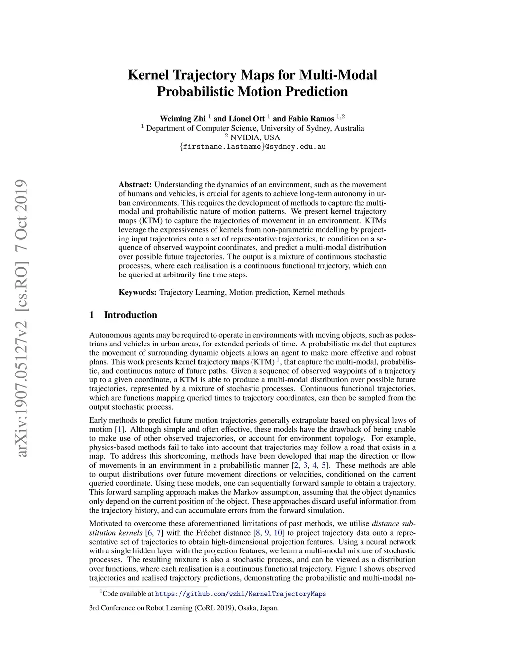 Kernel Trajectory Maps for Multi-Modal Probabilistic Motion Prediction
