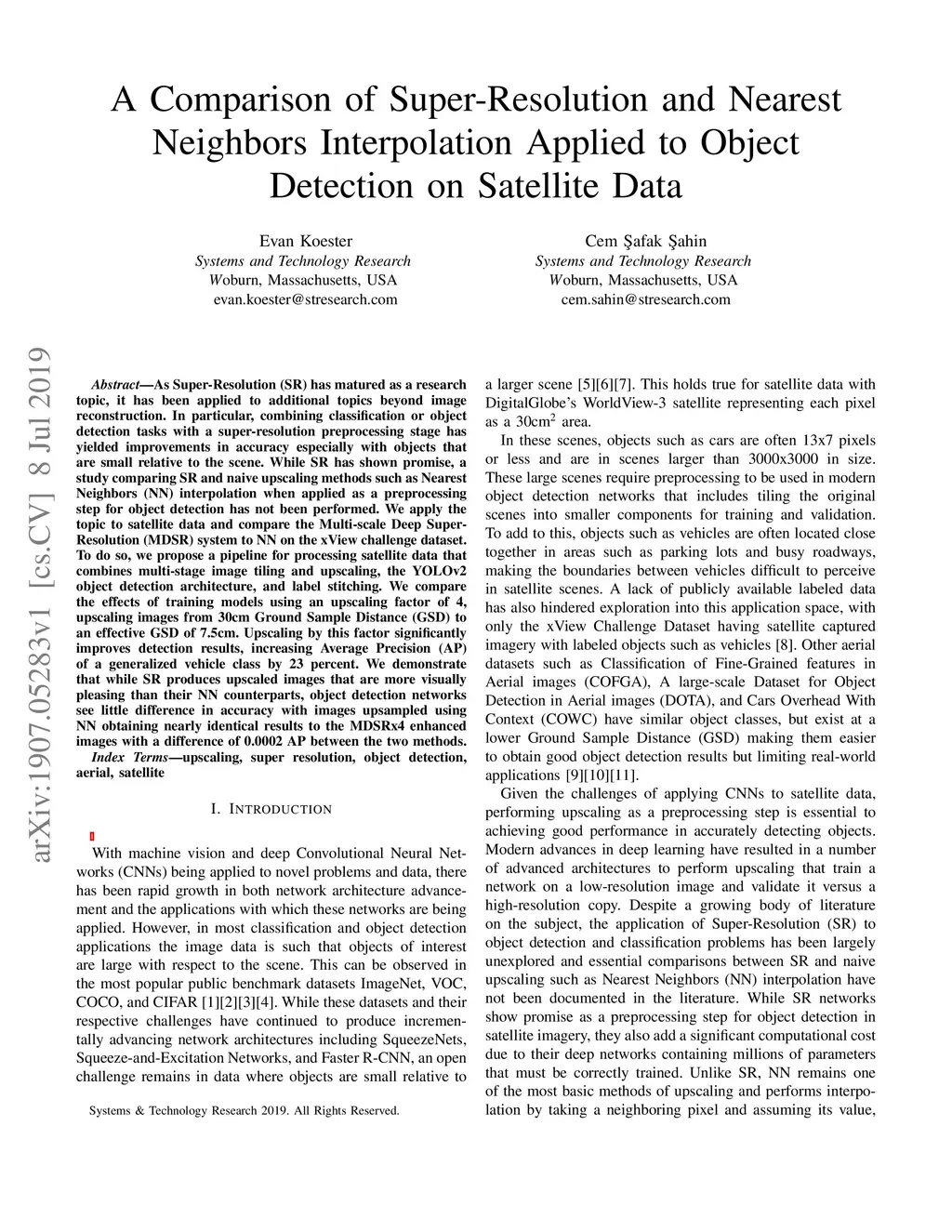 As Super-Resolution (SR) has matured as a research topic, it has been applied to additional topics beyond image reconstruction. In particular, combining classification or object detection tasks with a super-resolution preprocessing stage has yielded improvements in accuracy especially with objects that are small relative to the scene. While SR has shown promise, a study comparing SR and naive upscaling methods such as Nearest Neighbors (NN) interpolation when applied as a preprocessing step for object detection has not been performed. We apply the topic to satellite data and compare the Multi-scale Deep Super-Resolution (MDSR) system to NN on the xView challenge dataset. To do so, we propose a pipeline for processing satellite data that combines multi-stage image tiling and upscaling, the YOLOv2 object detection architecture, and label stitching. We compare the effects of training models using an upscaling factor of 4, upscaling images from 30cm Ground Sample Distance (GSD) to an effective GSD of 7.5cm. Upscaling by this factor significantly improves detection results, increasing Average Precision (AP) of a generalized vehicle class by 23 percent. We demonstrate that while SR produces upscaled images that are more visually pleasing than their NN counterparts, object detection networks see little difference in accuracy with images upsampled using NN obtaining nearly identical results to the MDSRx4 enhanced images with a difference of 0.0002 AP between the two methods.