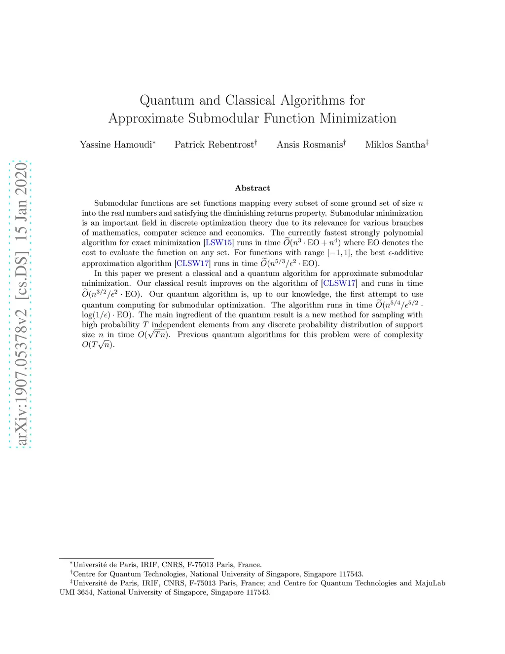 Quantum and Classical Algorithms for Approximate Submodular Function
