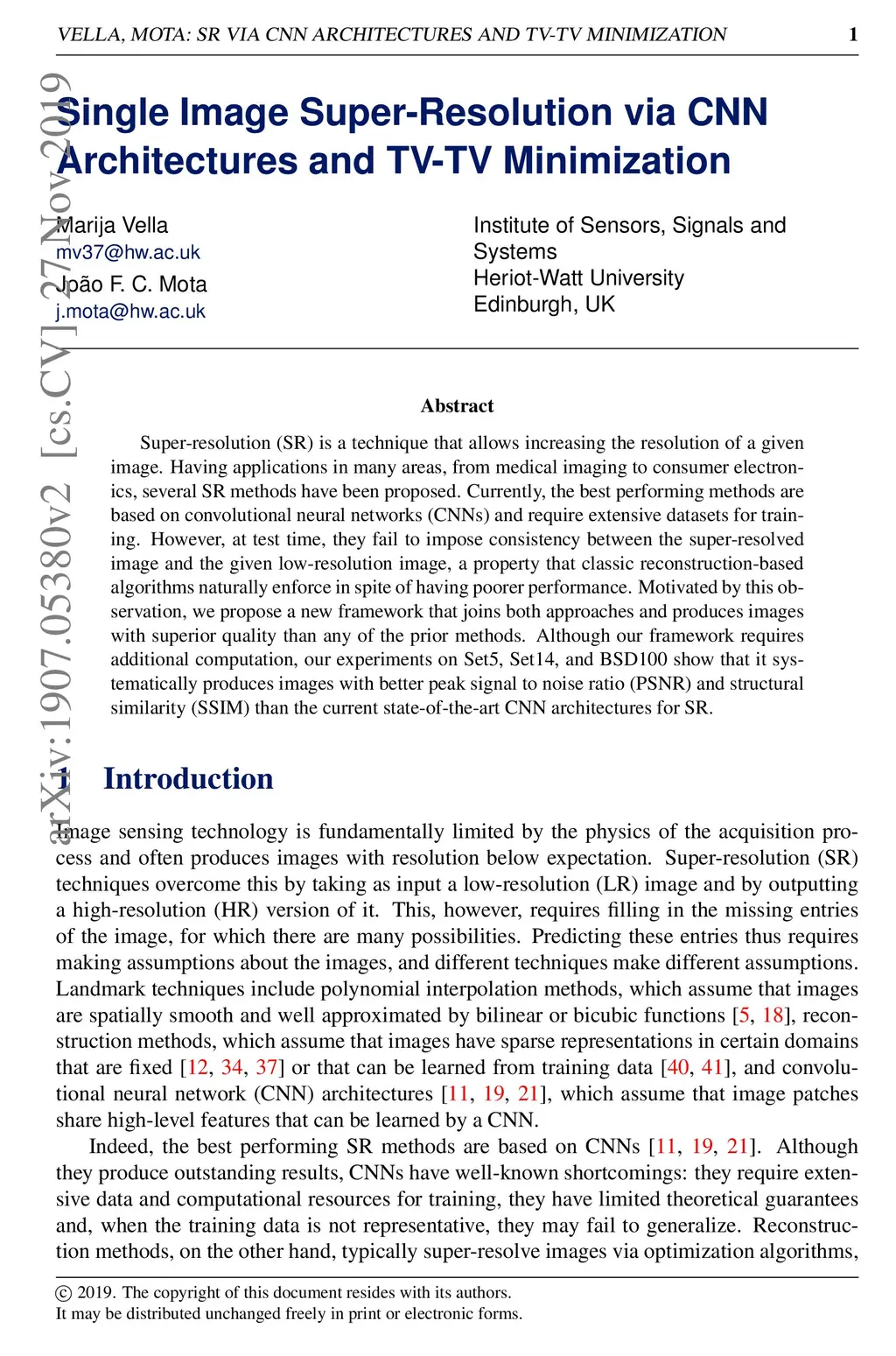 Single Image Super-Resolution via CNN Architectures and TV-TV