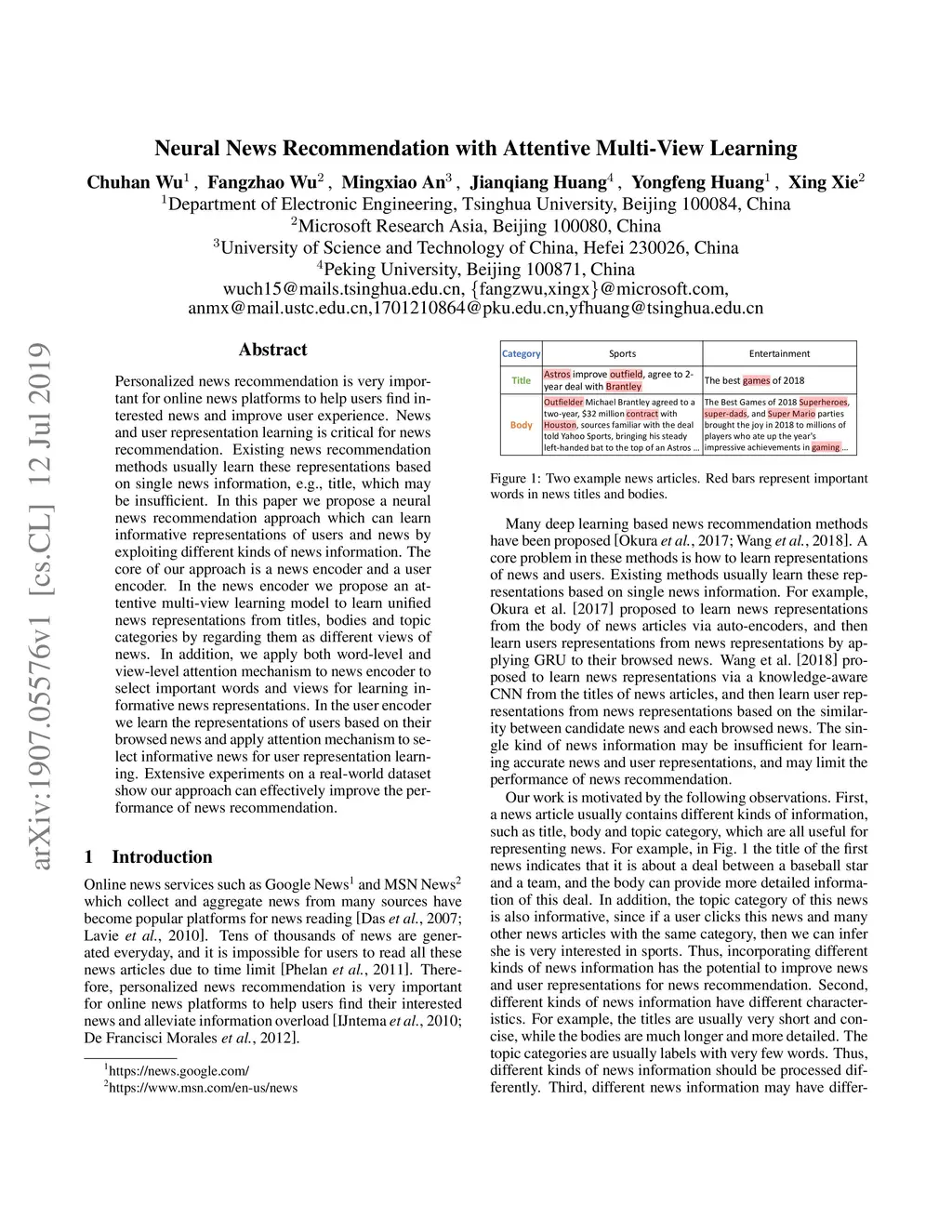 Neural News Recommendation with Attentive Multi-View Learning