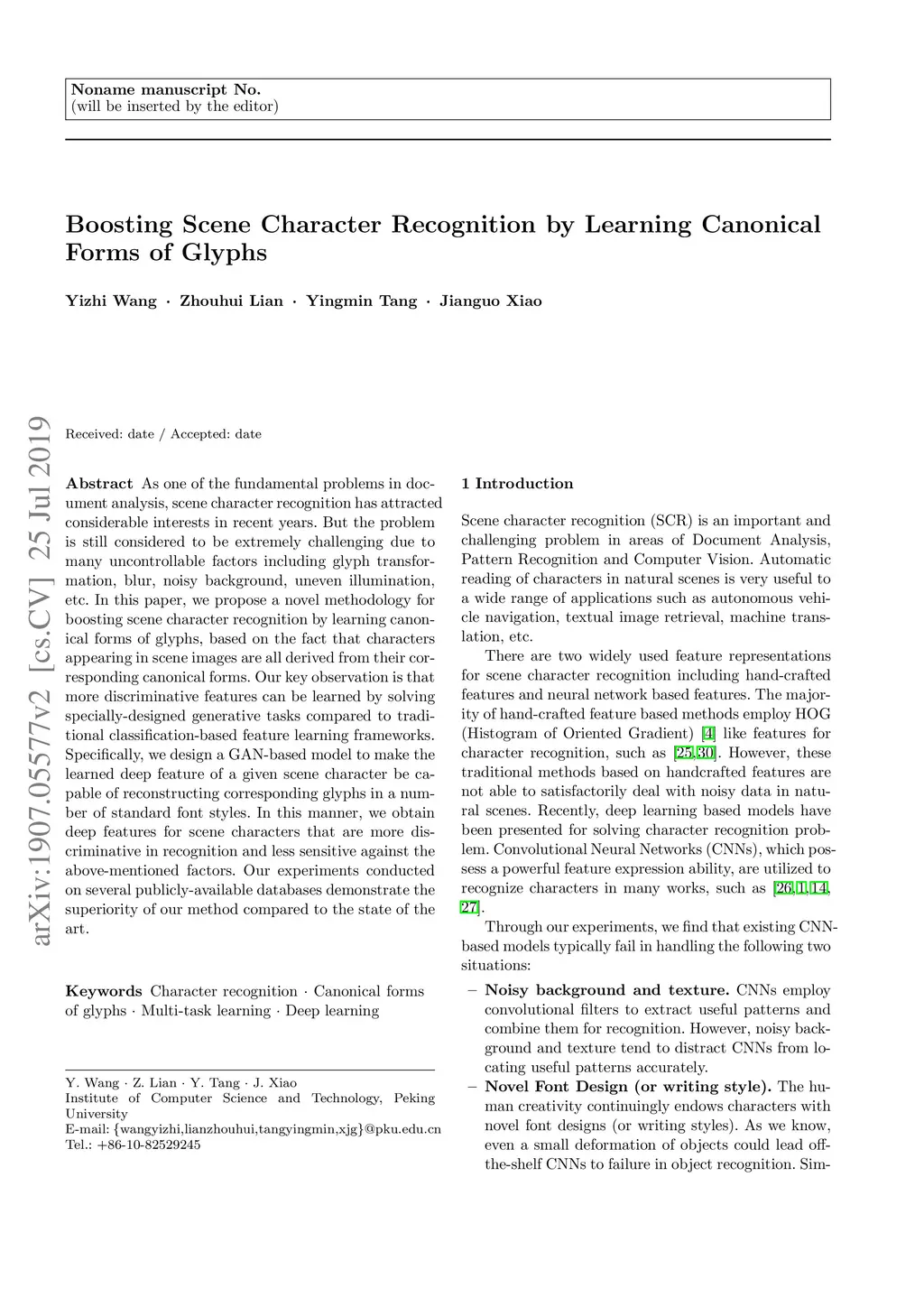 Boosting Scene Character Recognition by Learning Canonical Forms of