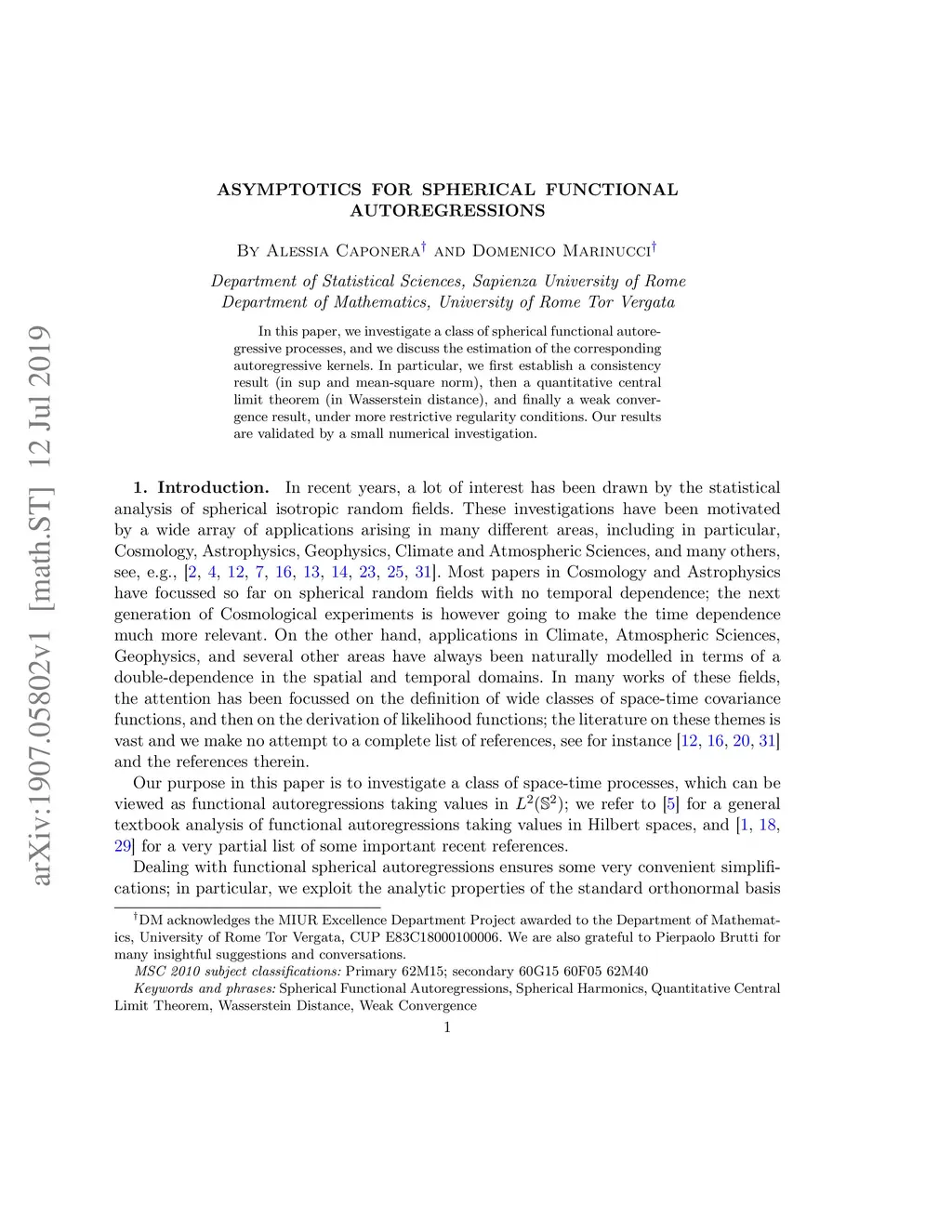 In this paper, we investigate a class of spherical functional autoregressive processes, and we discuss the estimation of the corresponding autoregressive kernels. In particular, we first establish a consistency result (in sup and mean-square norm), then a quantitative central limit theorem (in Wasserstein distance), and finally a weak convergence result, under more restrictive regularity conditions. Our results are validated by a small numerical investigation.