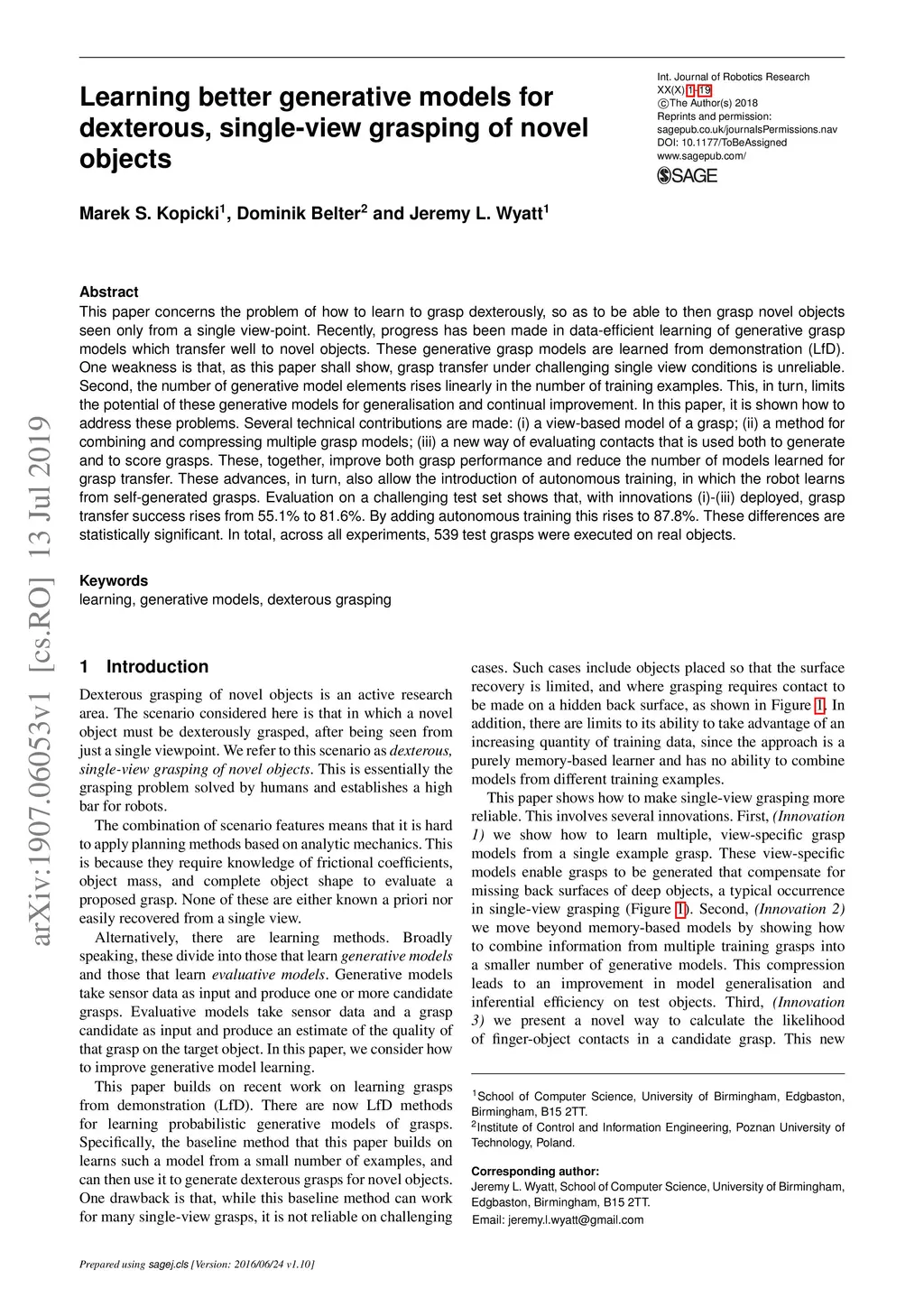 Learning better generative models for dexterous, single-view grasping of