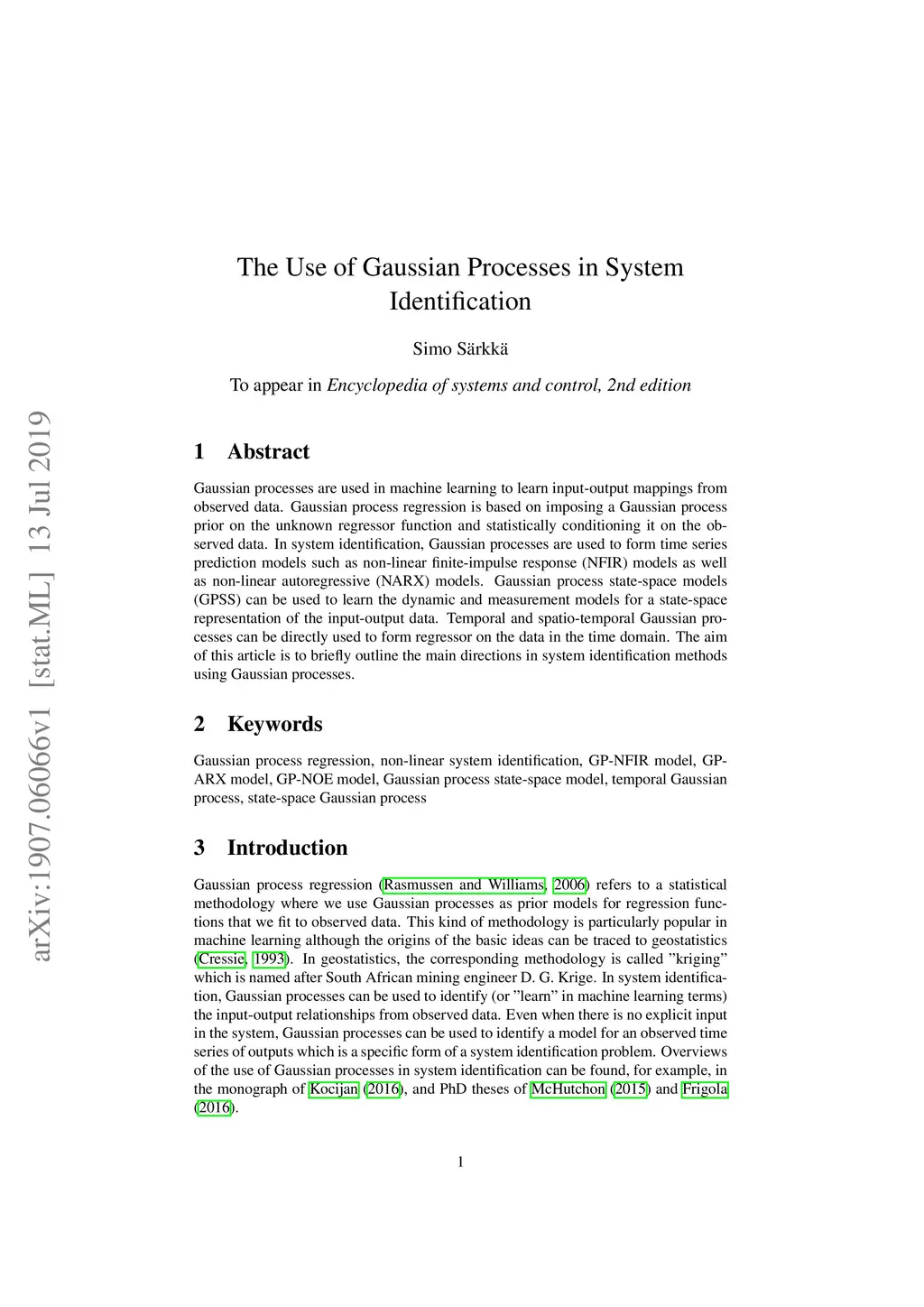 The Use of Gaussian Processes in System Identification