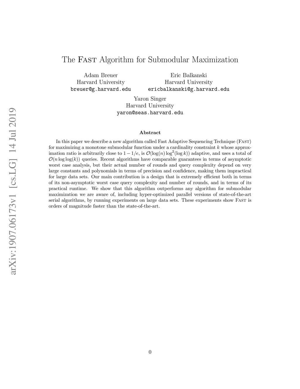 The FAST Algorithm for Submodular Maximization