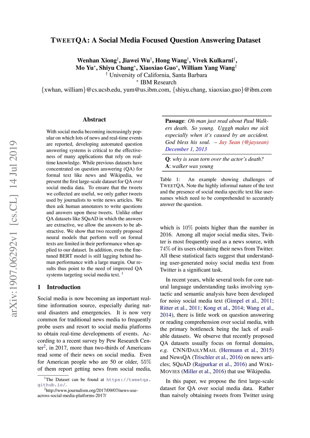 TWEETQA: A Social Media Focused Question Answering Dataset