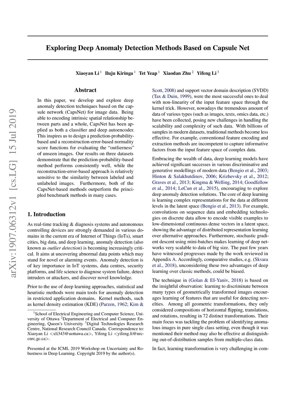 Exploring Deep Anomaly Detection Methods Based on Capsule Net