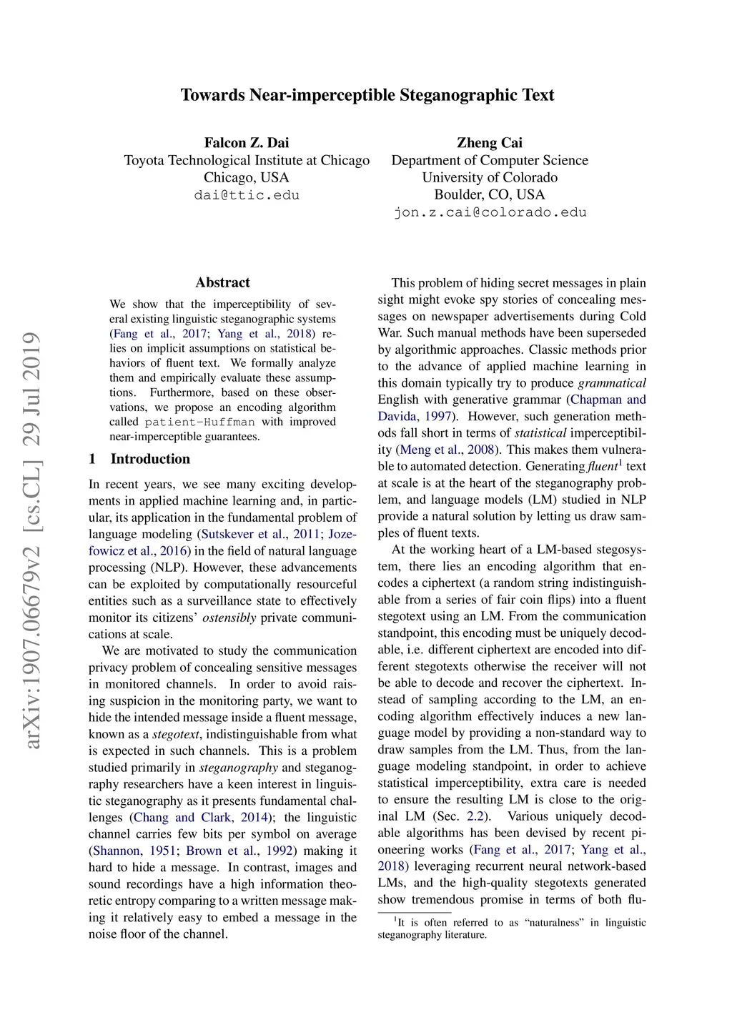 We show that the imperceptibility of several existing linguistic steganographic systems (Fang et al., 2017; Yang et al., 2018) relies on implicit assumptions on statistical behaviors of fluent text. We formally analyze them and empirically evaluate these assumptions. Furthermore, based on these observations, we propose an encoding algorithm called patient-Huffman with improved near-imperceptible guarantees.