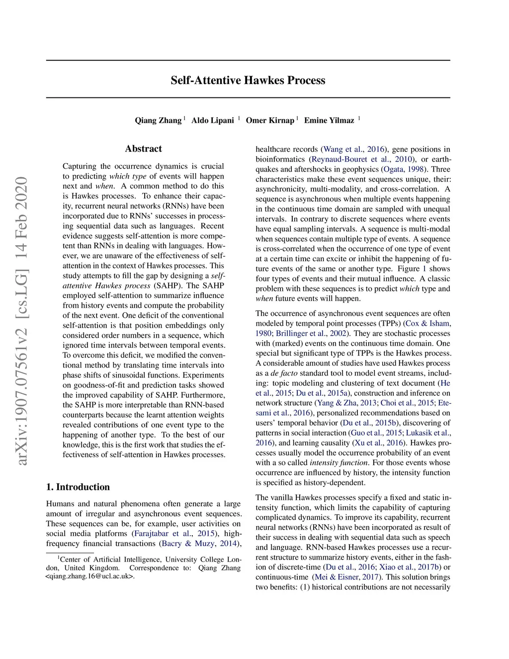 Self-Attentive Hawkes Processes
