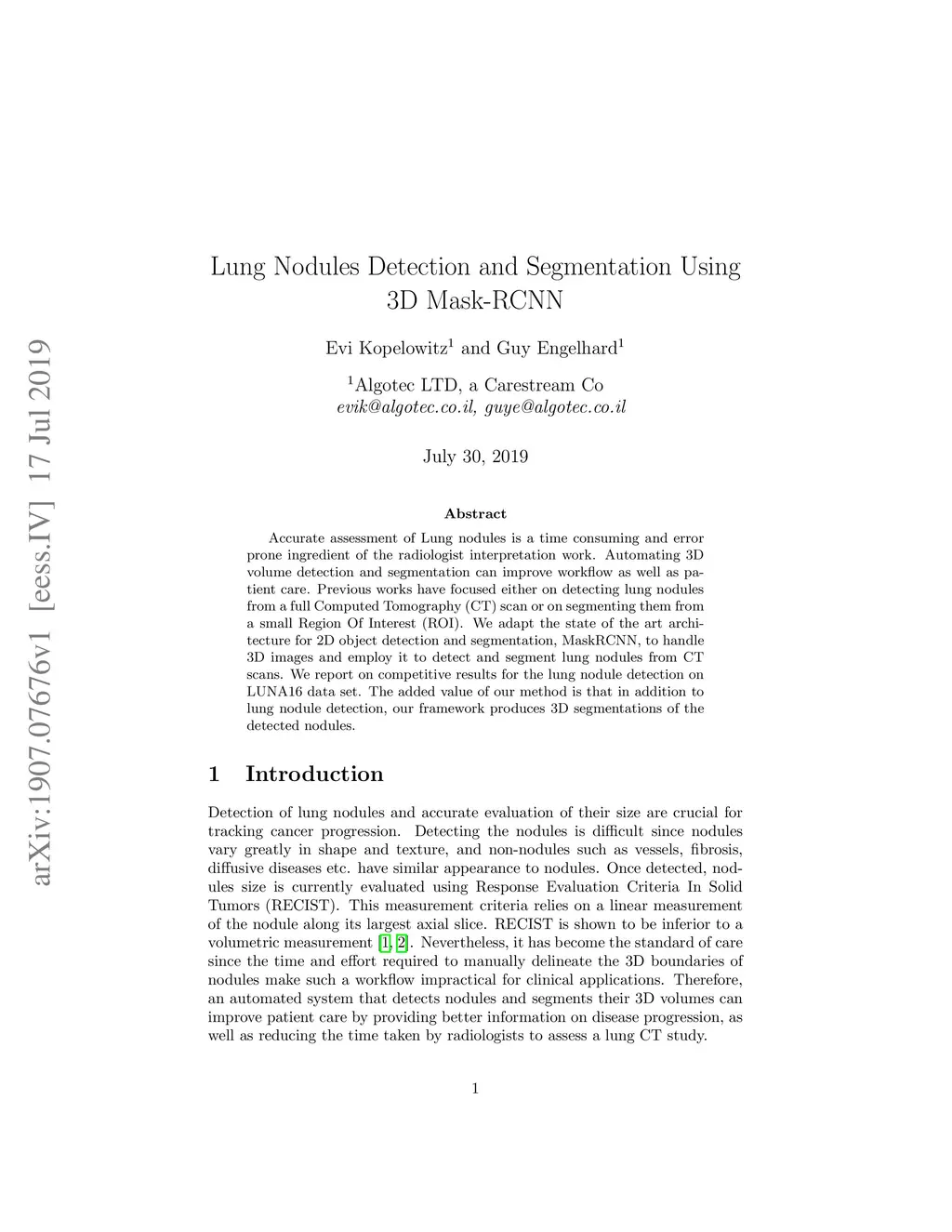 Lung Nodules Detection and Segmentation Using 3D Mask-RCNN