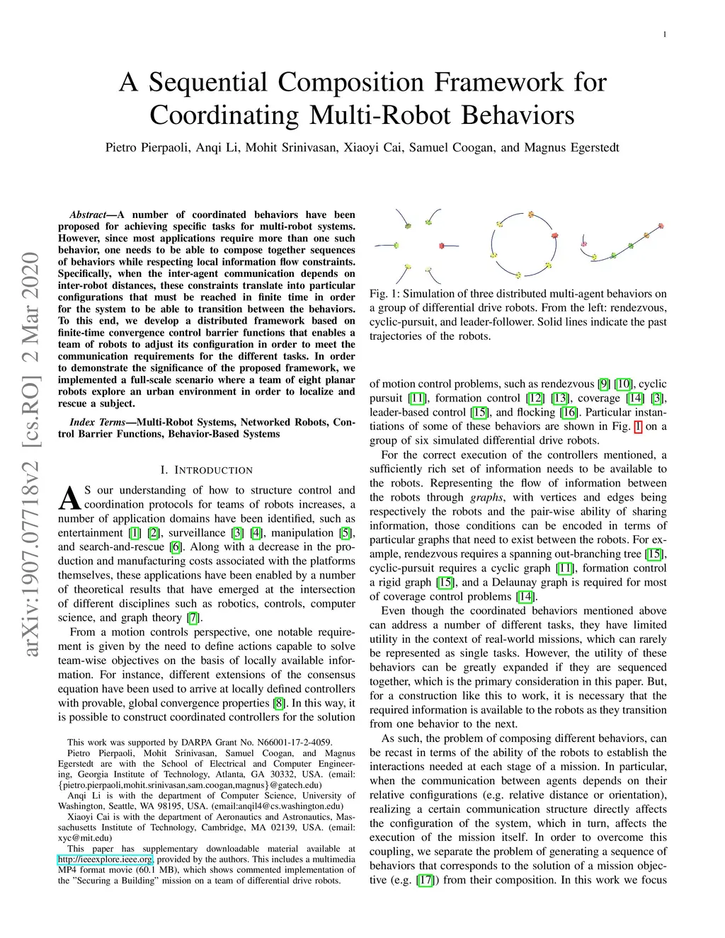 A number of coordinated behaviors have been proposed for achieving specific tasks for multi-robot systems. However, since most applications require more than one such behavior, one needs to be able to compose together sequences of behaviors while respecting local information flow constraints. Specifically, when the inter-agent communication depends on inter-robot distances, these constraints translate into particular configurations that must be reached in finite time in order for the system to be able to transition between the behaviors. To this end, we develop a distributed framework based on finite-time convergence control barrier functions that enables a team of robots to adjust its configuration in order to meet the communication requirements for the different tasks. In order to demonstrate the significance of the proposed framework, we implemented a full-scale scenario where a team of eight planar robots explore an urban environment in order to localize and rescue a subject.