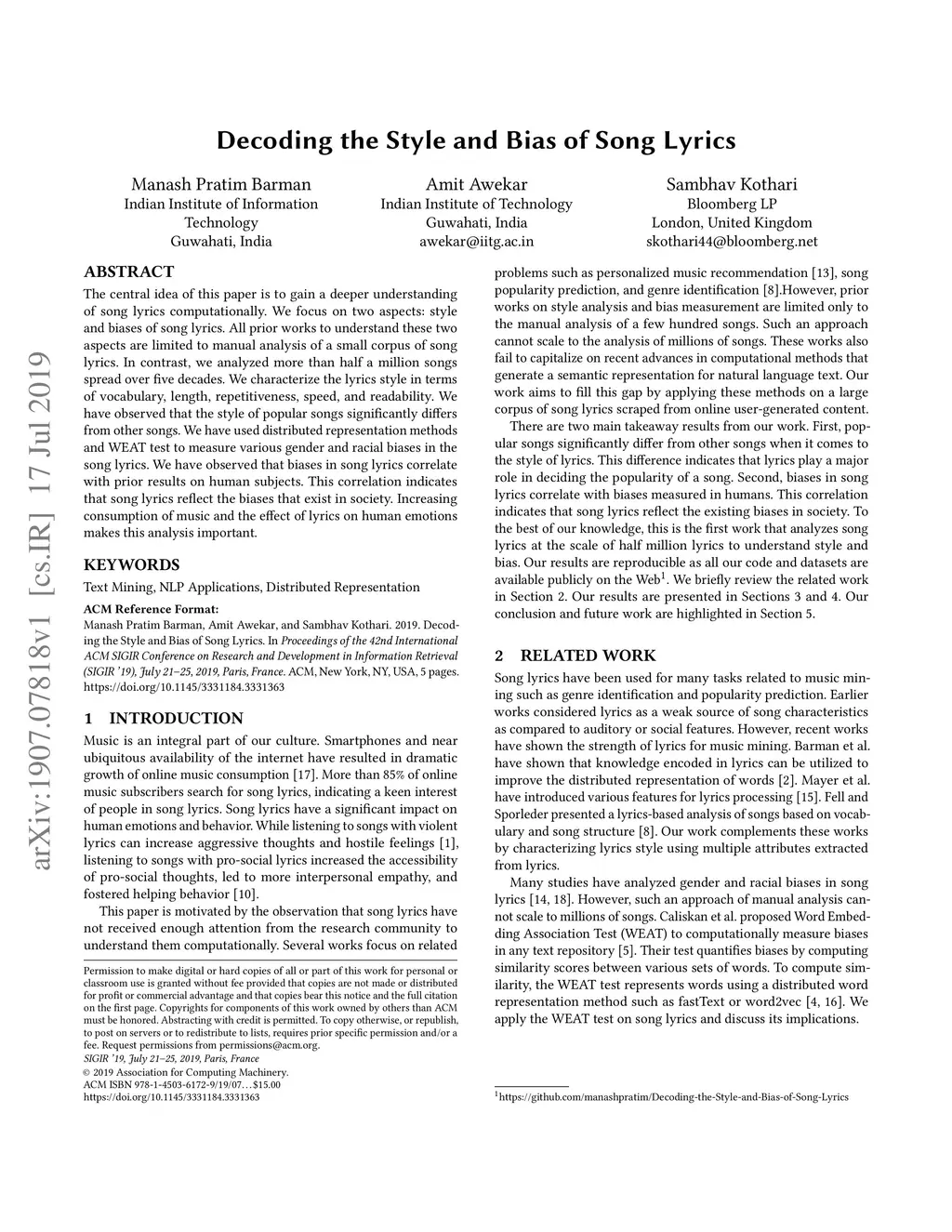 Decoding the Style and Bias of Song Lyrics