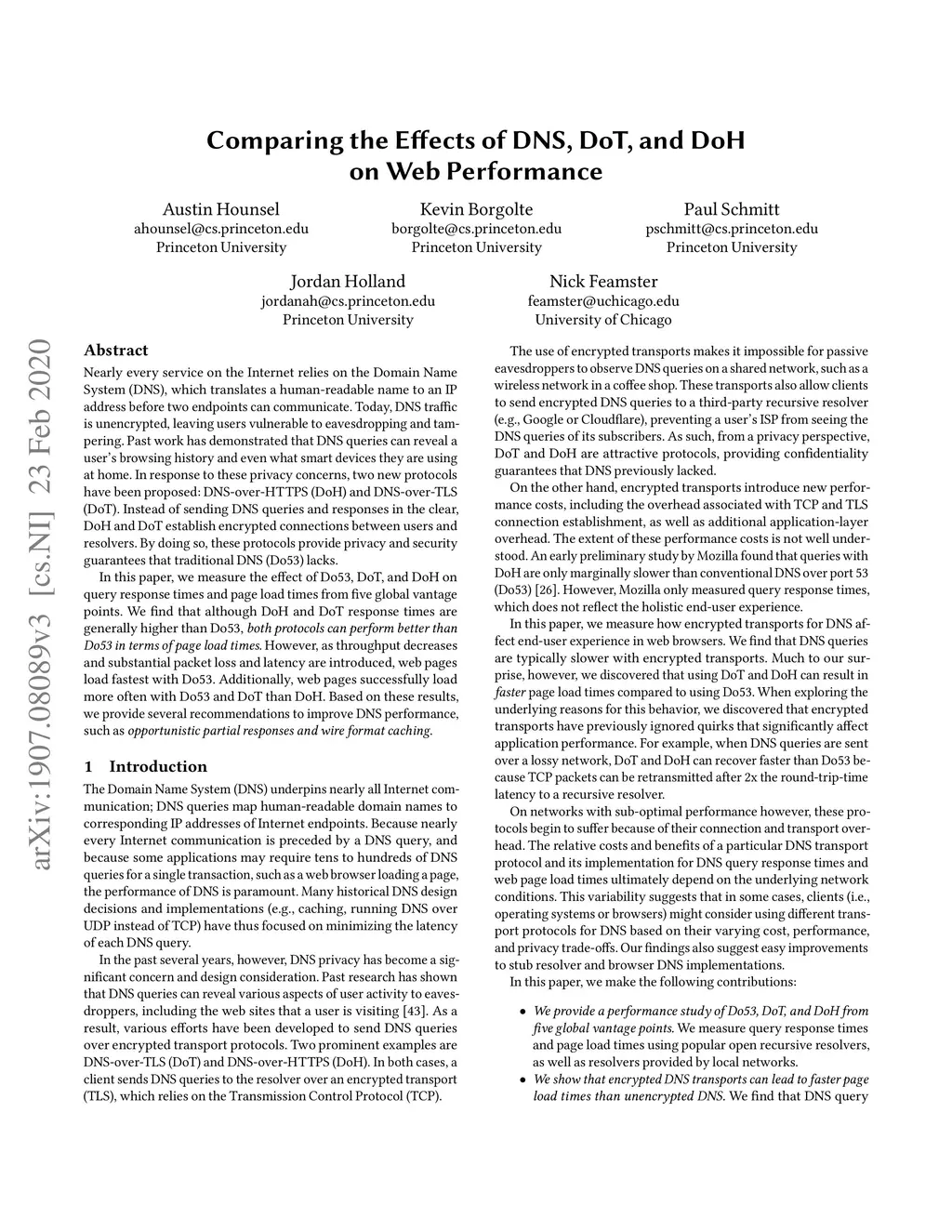 Comparing the Effects of DNS, DoT, and DoH on Web Performance