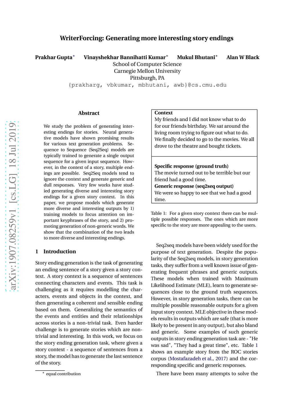 We study the problem of generating interesting endings for stories. Neural generative models have shown promising results for various text generation problems. Sequence to Sequence (Seq2Seq) models are typically trained to generate a single output sequence for a given input sequence. However, in the context of a story, multiple endings are possible. Seq2Seq models tend to ignore the context and generate generic and dull responses. Very few works have studied generating diverse and interesting story endings for a given story context. In this paper, we propose models which generate more diverse and interesting outputs by 1) training models to focus attention on important keyphrases of the story, and 2) promoting generation of non-generic words. We show that the combination of the two leads to more diverse and interesting endings.