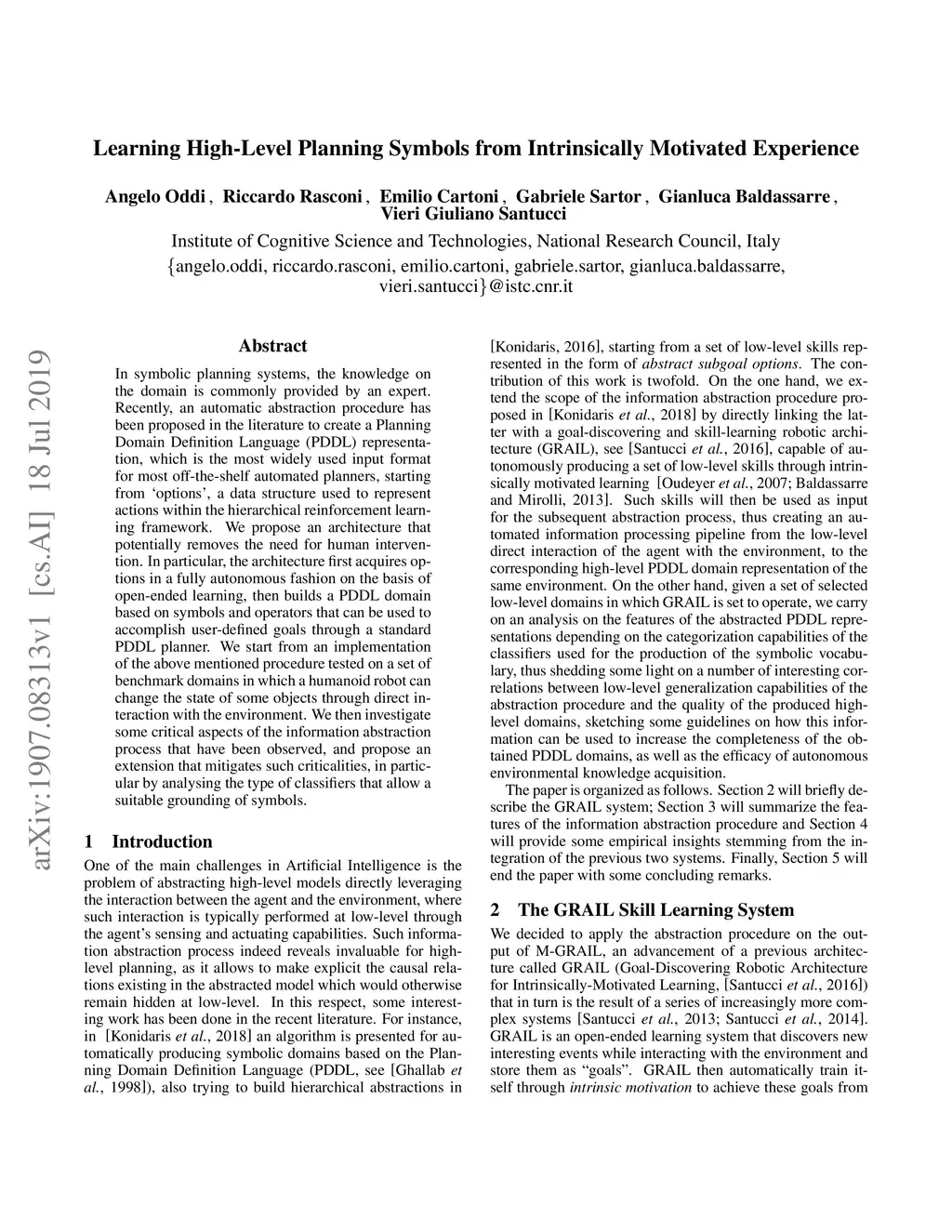 Learning High-Level Planning Symbols from Intrinsically Motivated