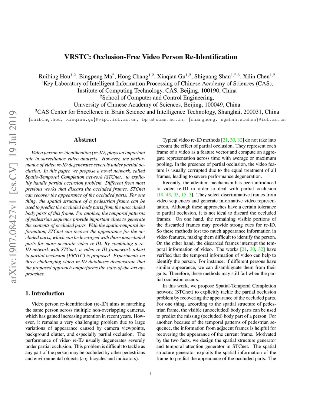 VRSTC: Occlusion-Free Video Person Re-Identification