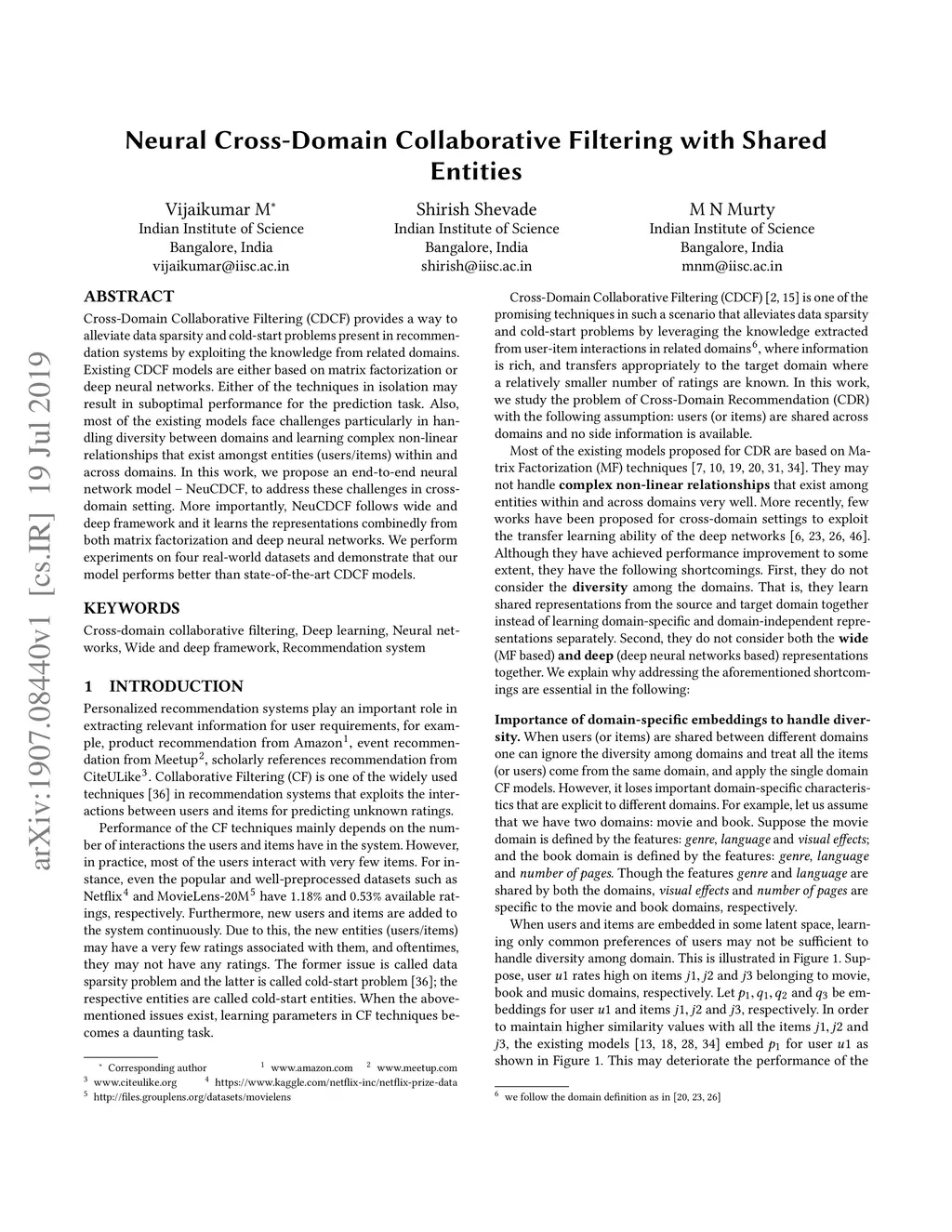 Neural Cross-Domain Collaborative Filtering with Shared Entities