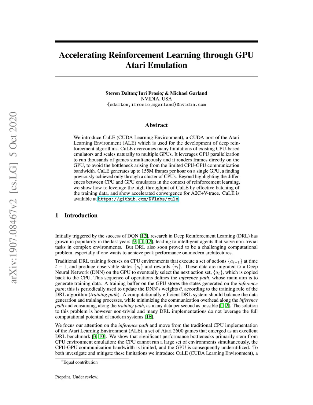 GPU-Accelerated Atari Emulation for Reinforcement Learning