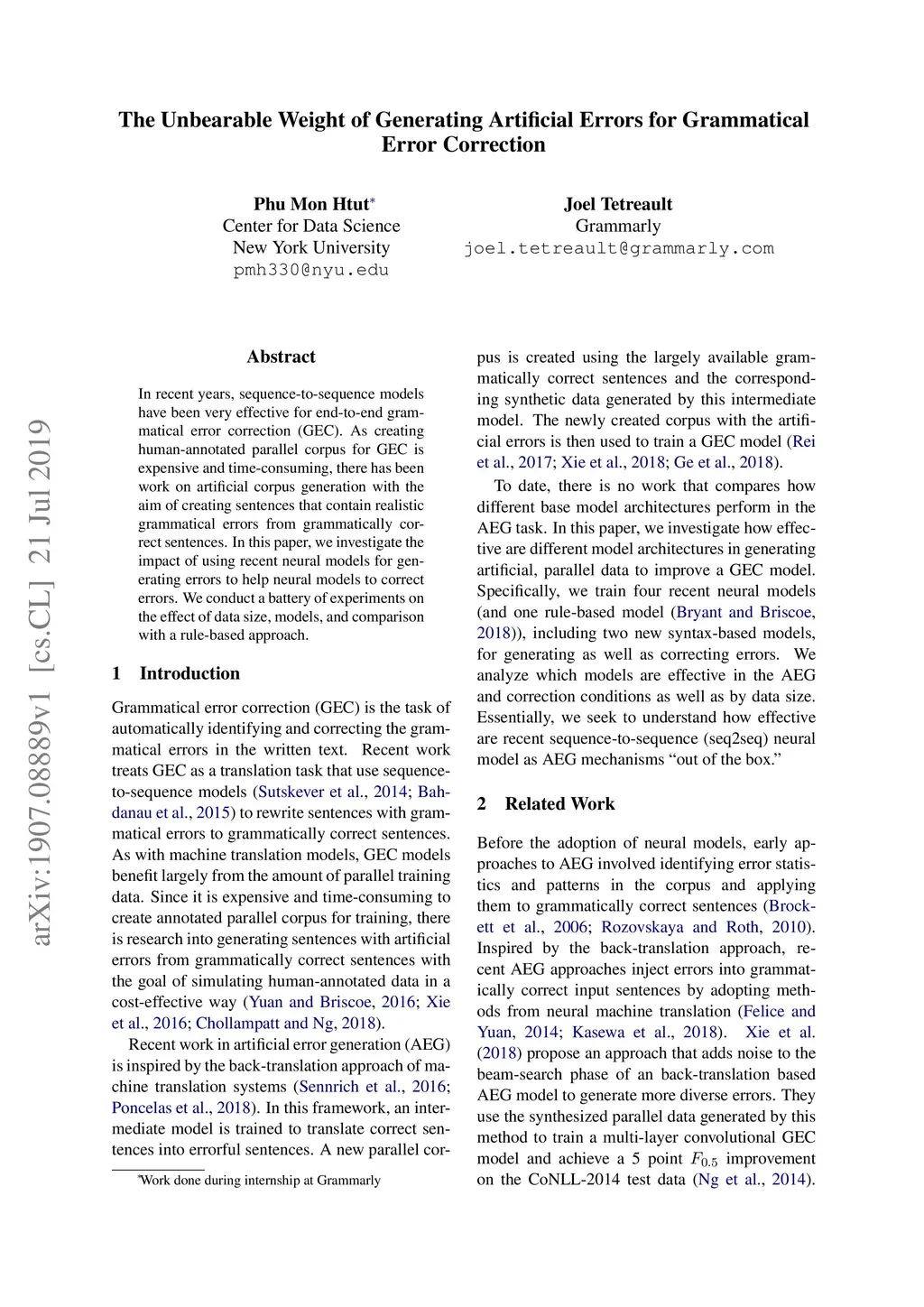 The Unbearable Weight of Generating Artificial Errors for Grammatical
