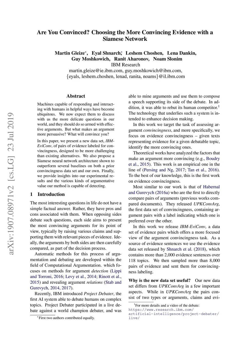 Are You Convinced? Choosing the More Convincing Evidence with a Siamese