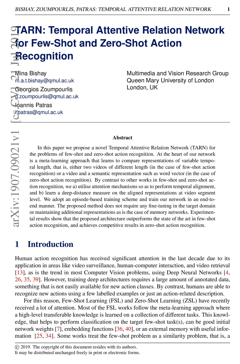 TARN: Temporal Attentive Relation Network for Few-Shot and Zero-Shot