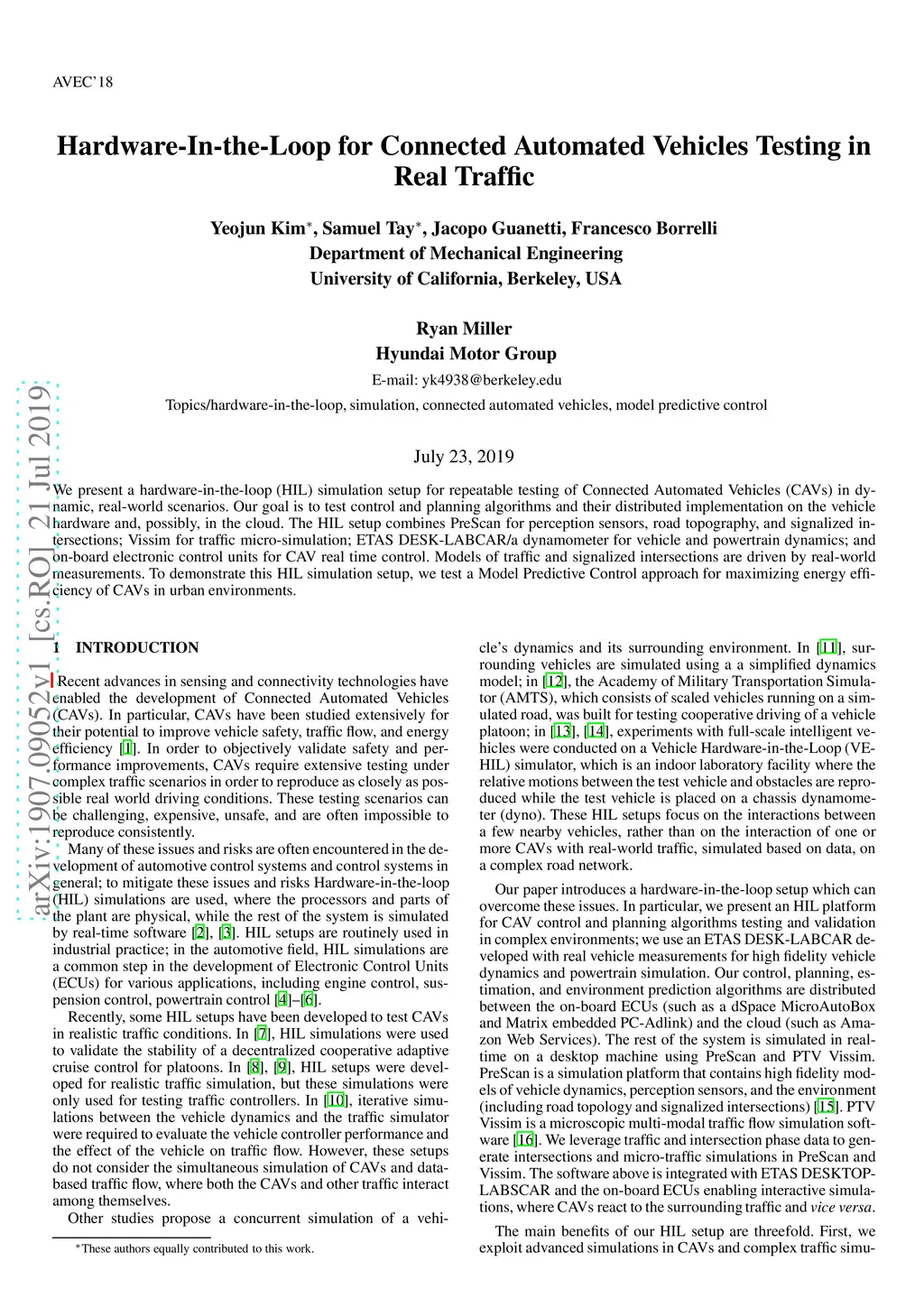 Hardware-In-the-Loop for Connected Automated Vehicles Testing in Real