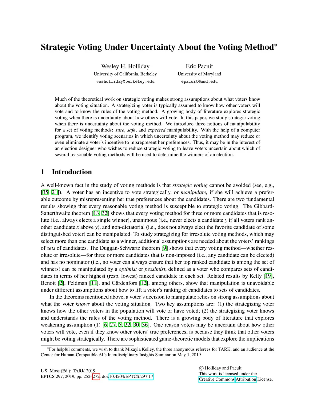Much of the theoretical work on strategic voting makes strong assumptions about what voters know about the voting situation. A strategizing voter is typically assumed to know how other voters will vote and to know the rules of the voting method. A growing body of literature explores strategic voting when there is uncertainty about how others will vote. In this paper, we study strategic voting when there is uncertainty about the voting method. We introduce three notions of manipulability for a set of voting methods: sure, safe, and expected manipulability. With the help of a computer program, we identify voting scenarios in which uncertainty about the voting method may reduce or even eliminate a voter's incentive to misrepresent her preferences. Thus, it may be in the interest of an election designer who wishes to reduce strategic voting to leave voters uncertain about which of several reasonable voting methods will be used to determine the winners of an election.