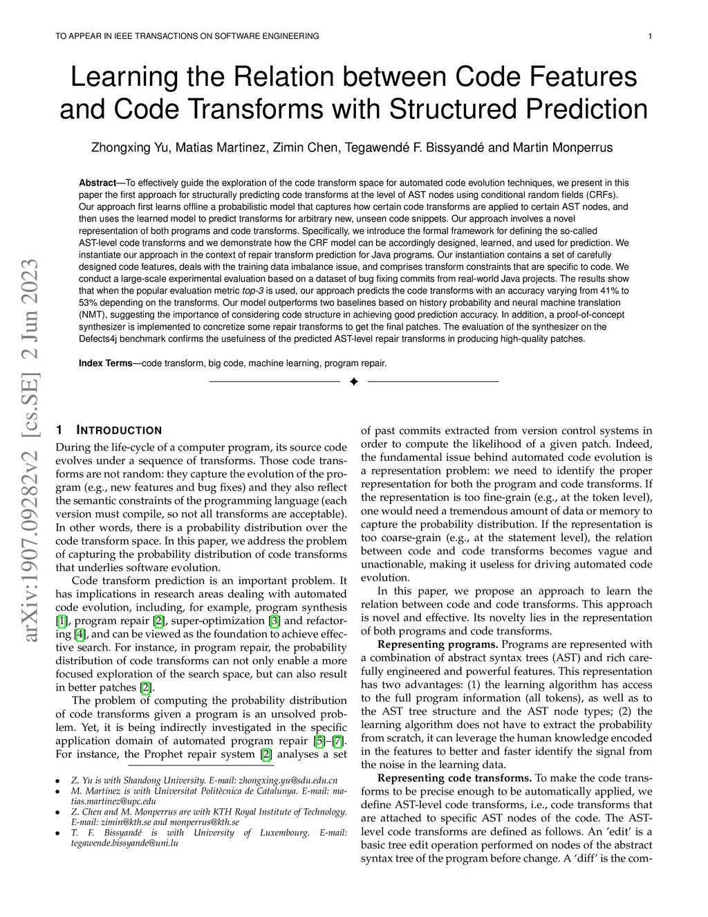 Learning the Relation between Code Features and Code Transforms with