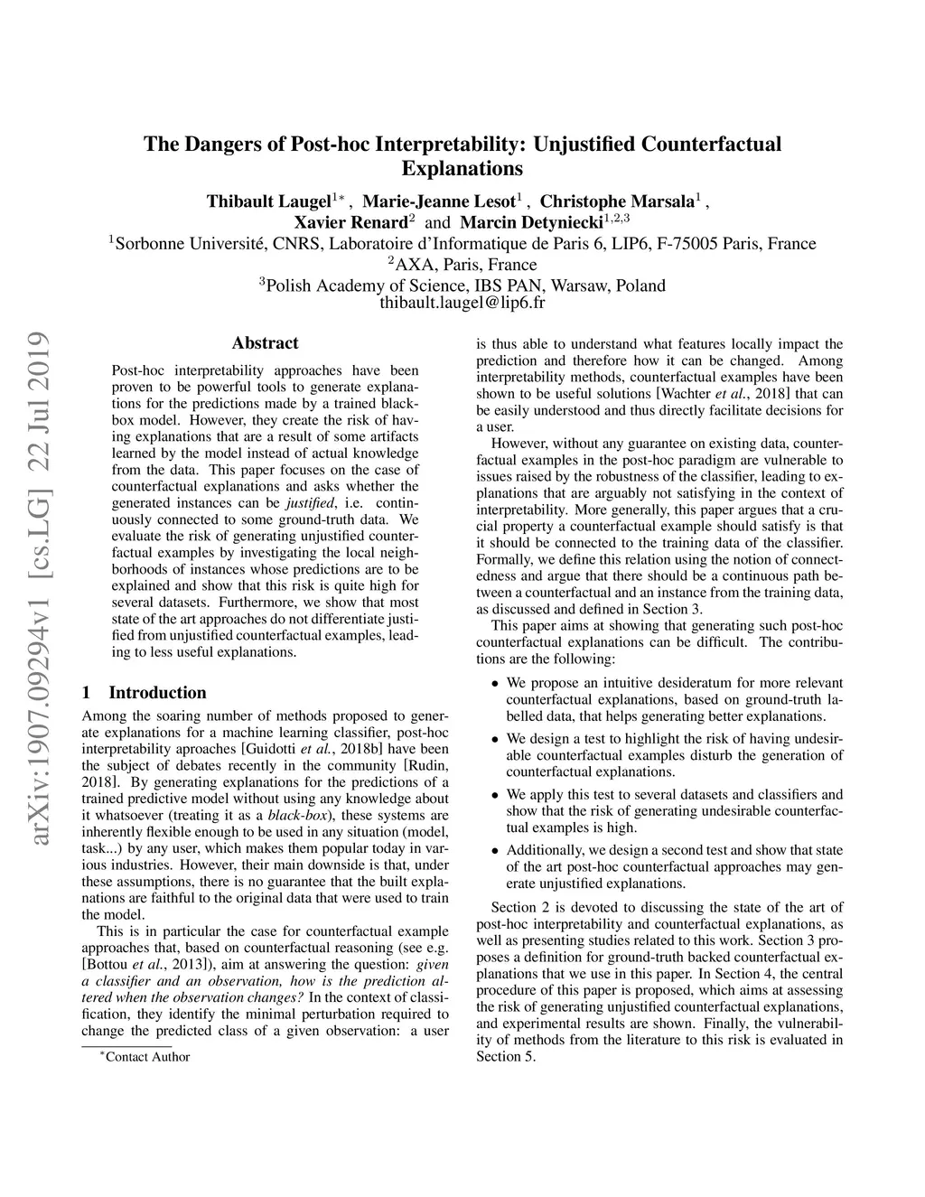 The Dangers of Post-hoc Interpretability: Unjustified Counterfactual