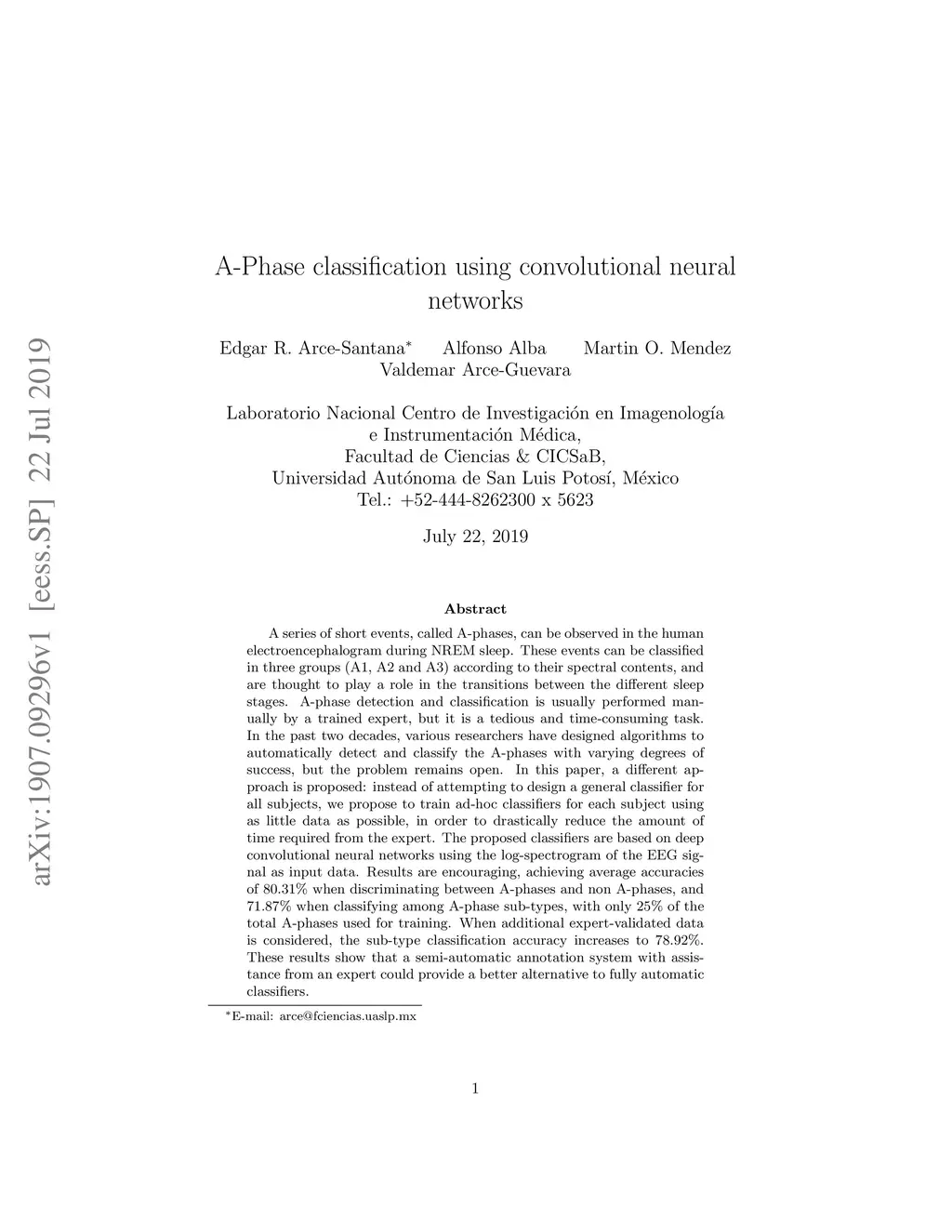 A series of short events, called A-phases, can be observed in the human electroencephalogram during NREM sleep. These events can be classified in three groups (A1, A2 and A3) according to their spectral contents, and are thought to play a role in the transitions between the different sleep stages. A-phase detection and classification is usually performed manually by a trained expert, but it is a tedious and time-consuming task. In the past two decades, various researchers have designed algorithms to automatically detect and classify the A-phases with varying degrees of success, but the problem remains open. In this paper, a different approach is proposed: instead of attempting to design a general classifier for all subjects, we propose to train ad-hoc classifiers for each subject using as little data as possible, in order to drastically reduce the amount of time required from the expert. The proposed classifiers are based on deep convolutional neural networks using the log-spectrogram of the EEG signal as input data. Results are encouraging, achieving average accuracies of 80.31% when discriminating between A-phases and non A-phases, and 71.87% when classifying among A-phase sub-types, with only 25% of the total A-phases used for training. When additional expert-validated data is considered, the sub-type classification accuracy increases to 78.92%. These results show that a semi-automatic annotation system with assistance from an expert could provide a better alternative to fully automatic classifiers.