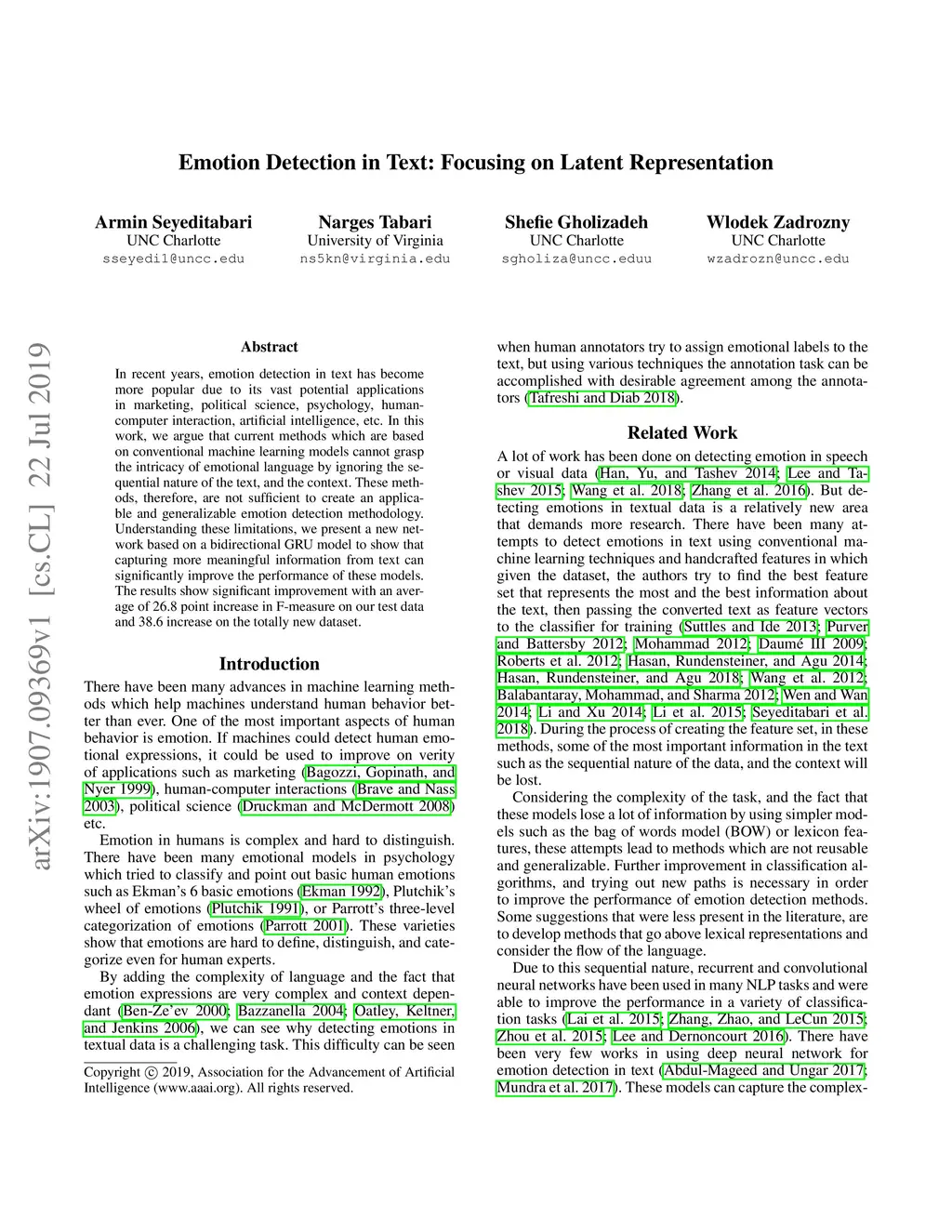 Emotion Detection in Text: Focusing on Latent Representation