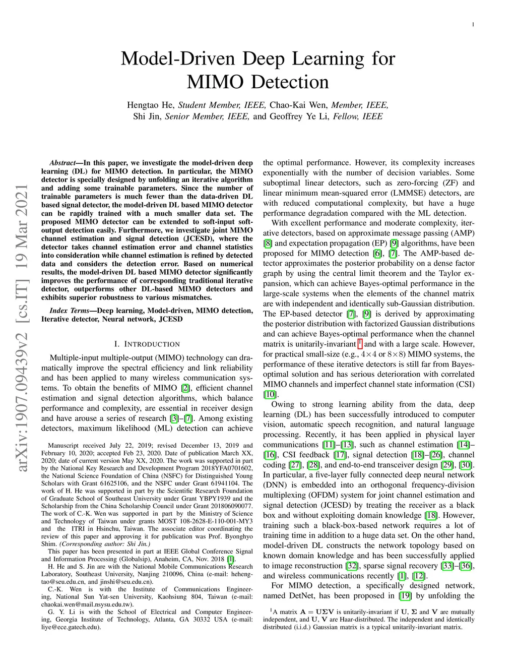 Model-Driven Deep Learning for MIMO Detection