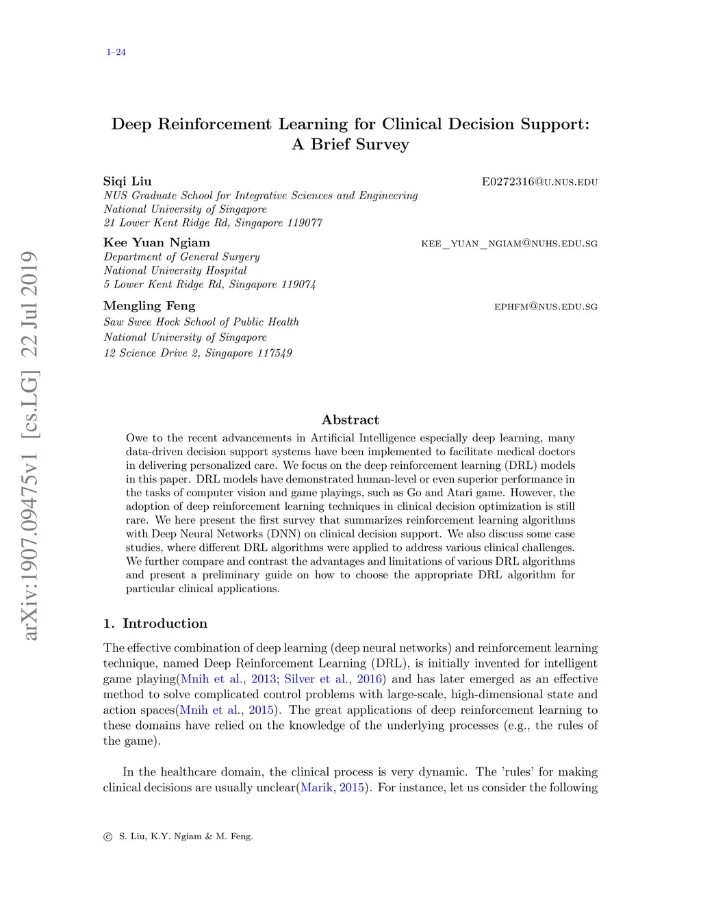 Deep Reinforcement Learning for Clinical Decision Support: A Brief