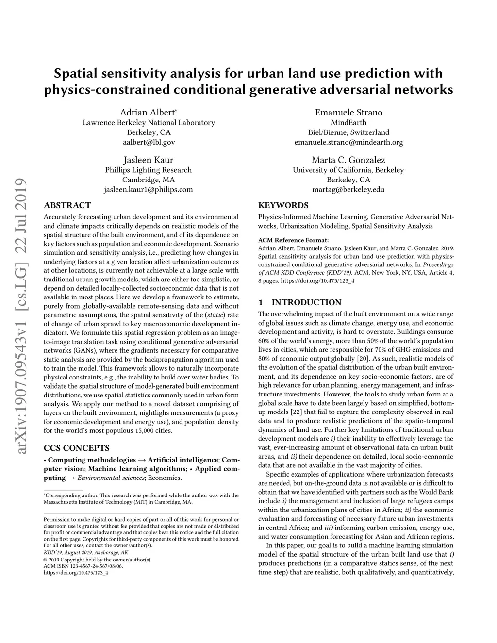 Accurately forecasting urban development and its environmental and climate impacts critically depends on realistic models of the spatial structure of the built environment, and of its dependence on key factors such as population and economic development. Scenario simulation and sensitivity analysis, i.e., predicting how changes in underlying factors at a given location affect urbanization outcomes at other locations, is currently not achievable at a large scale with traditional urban growth models, which are either too simplistic, or depend on detailed locally-collected socioeconomic data that is not available in most places. Here we develop a framework to estimate, purely from globally-available remote-sensing data and without parametric assumptions, the spatial sensitivity of the (\textit{static}) rate of change of urban sprawl to key macroeconomic development indicators. We formulate this spatial regression problem as an image-to-image translation task using conditional generative adversarial networks (GANs), where the gradients necessary for comparative static analysis are provided by the backpropagation algorithm used to train the model. This framework allows to naturally incorporate physical constraints, e.g., the inability to build over water bodies. To validate the spatial structure of model-generated built environment distributions, we use spatial statistics commonly used in urban form analysis. We apply our method to a novel dataset comprising of layers on the built environment, nightlighs measurements (a proxy for economic development and energy use), and population density for the world's most populous 15,000 cities.