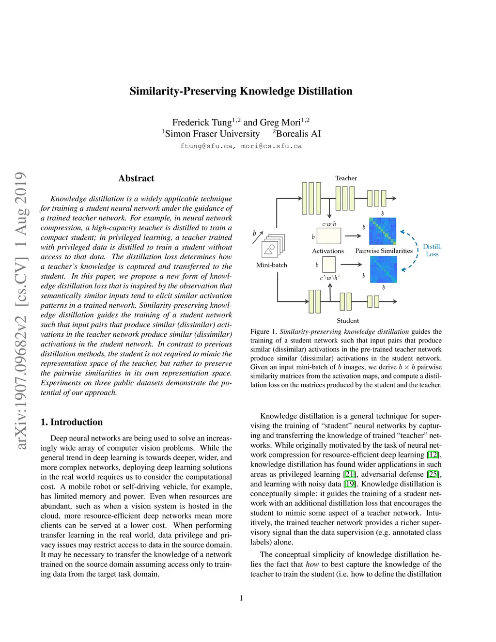 Similarity-Preserving Knowledge Distillation