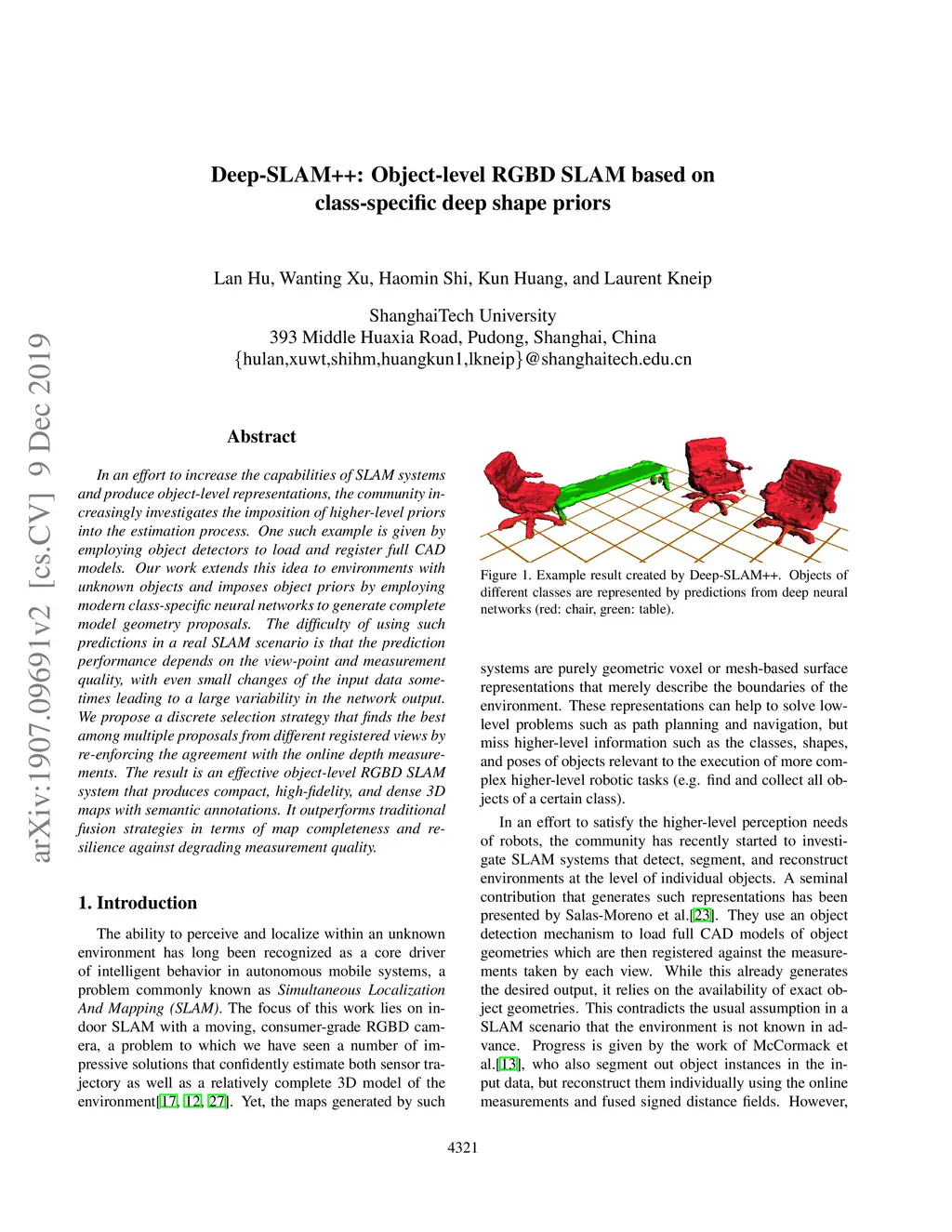 Deep-SLAM++: Object-level RGBD SLAM based on class-specific deep shape